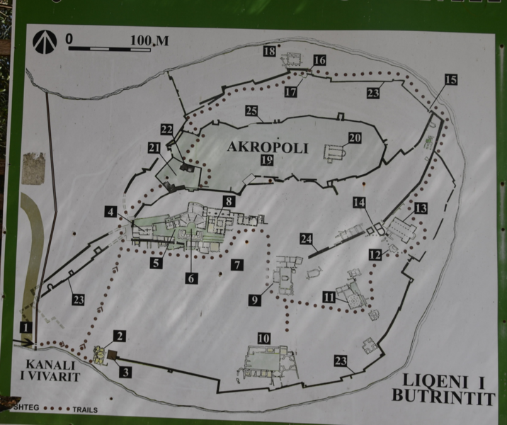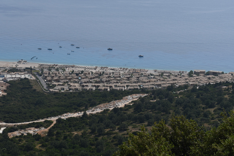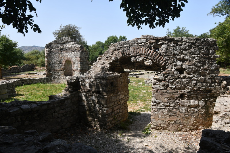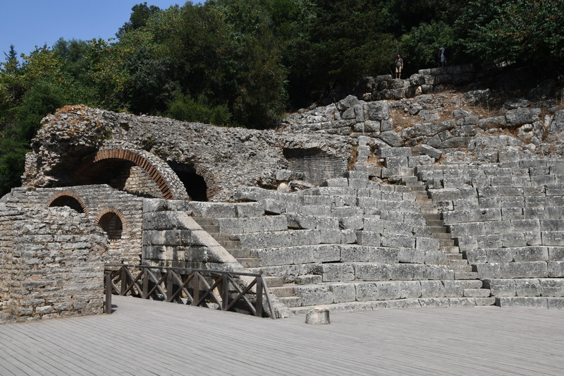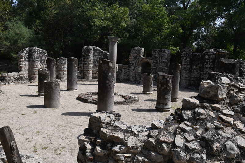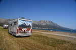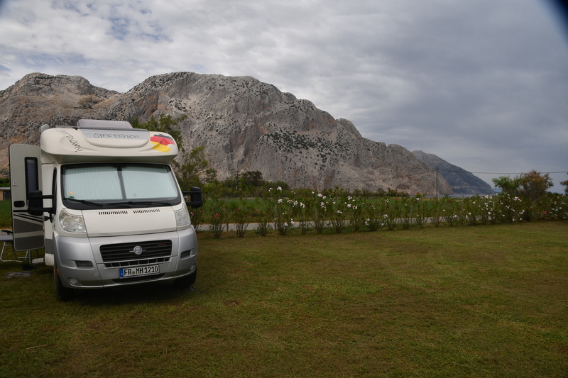 Schon nach wenigen Kilometern erreichen wir die Grenze. Beim griechischen Zoll wurden unsere Ausweise gescant, am albanischen Grenzübergang mussten wir unsere Ausweise, die Autopapiere und die grüne Versicherungskarte vorlegen. Wir erreichen den Vivar-Kanal und überqueren diesen mit einer Seilfähre und schon stehen wir vor der Ausgrabungsstätte von Butrint. Hier die erste Änderung zu griechischen Ausgrabungsstätten – der Seniorenrabatt beim Eintritt gilt nur für Albaner. Viele der Monumente, die man heute in der antiken Stadt besichtigen kann, wurden von der italienschischen Archäologischen Mission, unter der Leitung von Luigi Maria Ugolini, (1928 – 1939) ausgegraben. Knapp 2 Stunden wandern wir durch die Anlage, die zu den meistbesuchten, kulturellen Touristenzielen des Landes gehört. Die Küstenstraße entlang kommen wir nach Porto Palermo, die Bautätigkeiten hier sind erschreckend, weshalb wir uns hier nicht aufhalten. Von der Küstenstraße aus werfen wir einen Blick auf den U-Boot-Bunker und die Festung Porto Palermo, vorbei geht es am Bergdorf Dhermi. Wir überqueren, während einer landschaftlich schönen Fahrt den Llogara-Pass (über 1.000 hm). Bei Vlora ist der Strand mit Liegen und Sonnenschirmen gefüllt – dies ist nicht unsere Welt und so fahren wir nach eine kurzen Badestopp weiter. Bei Radhima-Beach finden wir unser Übernachtungsziel direkt am Strand.
