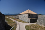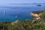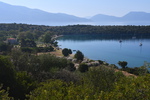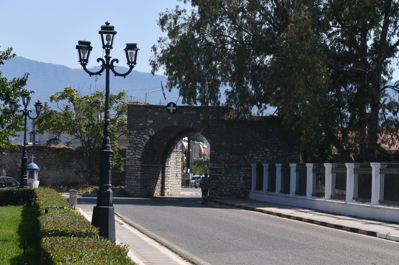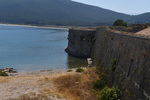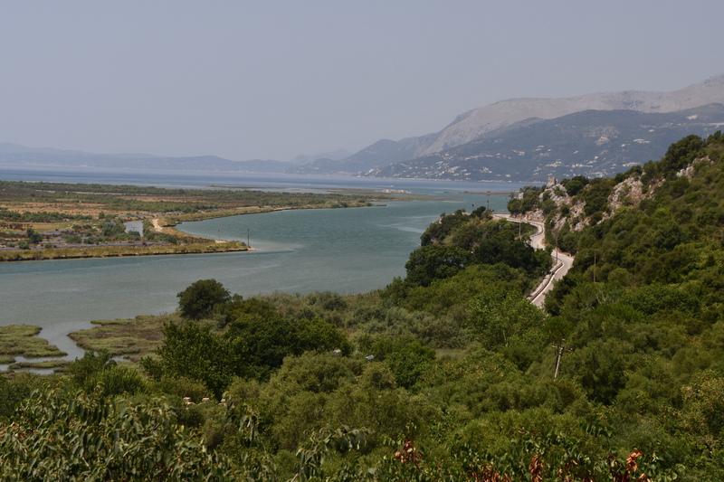 Wir möchten über Plagia zum Übergang auf die Insel Lefkada fahren. Wir bleiben auf der Küstenstraße, die uns an mehreren schönen Buchten mit Segelschiffen, vorbeiführt. Die Straße ist teilweise sehr steil, aber kein Problem bis sie in eine üble Schotterpiste übergeht und wie aus dem nichts vor einem verschlossenen Tor endet. Also müssen wir umkehren. Wir müssen fast den ganzen Weg zurück. Etwas oberhalb unseres Startpunktes von heute morgen, erblickt Mario ein Hinweisschild, diesen Abzweig nehmen wir – keine gute Entscheidung. Die Straße ist zwischen den Häusern und parkenden Autos sehr eng und endet für uns an einem Baucontainer an dem wir nicht vorbeifahren können, umdrehen geht nicht. Mario fährt die ganzen engen Passagen langsam im Rückwärtsgang. Zum Glück ist er ein so guter Autofahrer!! Beim 3. Versuch finden wir den richtigen Abzweig und so erreichen wir den Übergang nach Lefkada, wo wir die Festung Agia Marvo besichtigen. Danach fahren wir durch den Tunnel, der den Übergang vom Ionische Meer zum Ambrakaischen Golf durchschneidet. Kurz hinter Mitikas, am Monolithi-Strand erreichen wir unser Tagesziel. Hier verbringen wir einen netten Abend mit einem Paar aus Mailand und einem Östereicher aus Söll bei Kufstein.