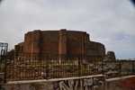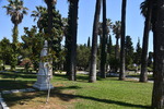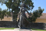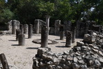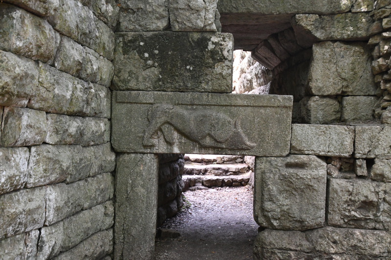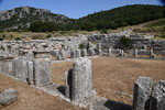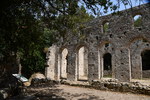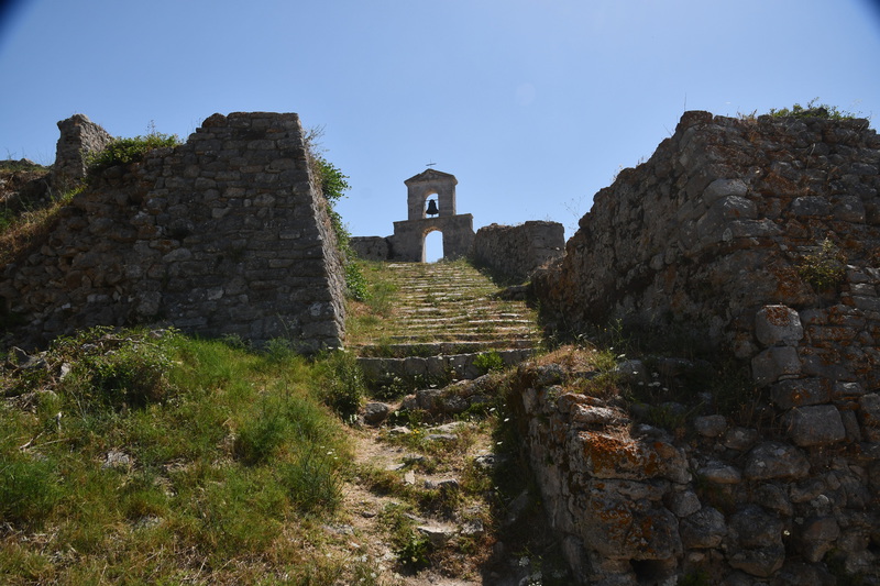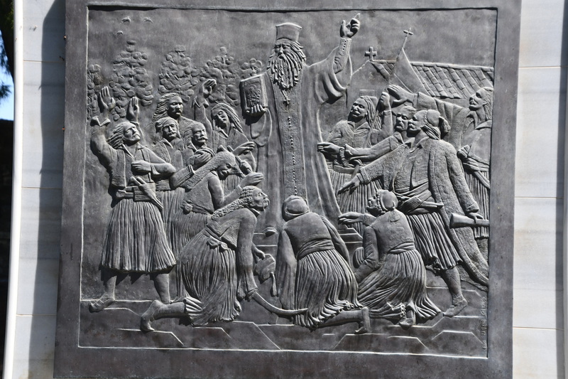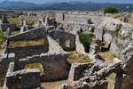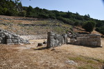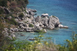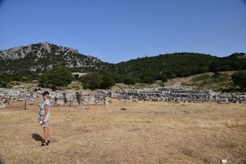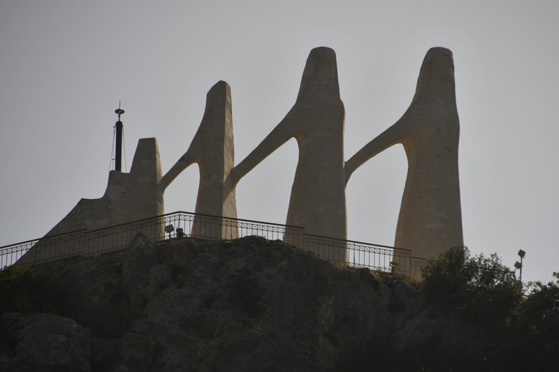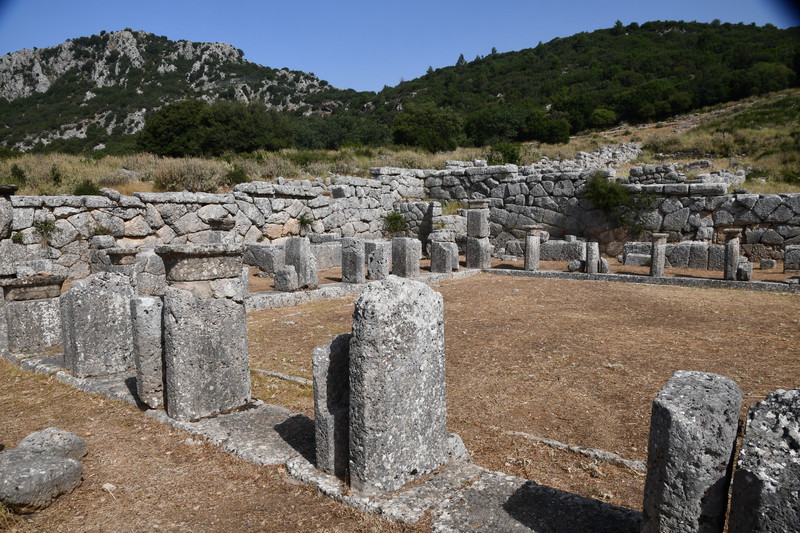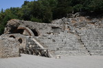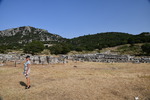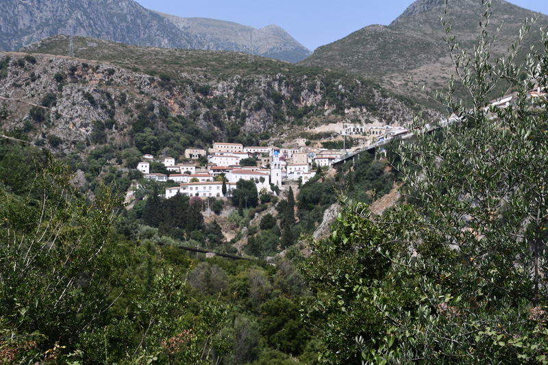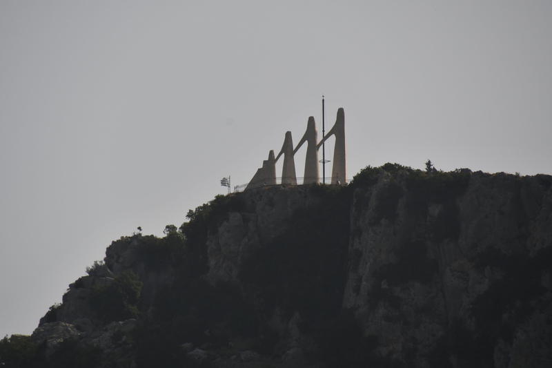 Heute geht es wieder einmal in die Bergwelt. Wir fahren über Kanali zu den Ausgrabungen des Antiken Kassopi mit den Resten des Amphitheaters. Die Figurengruppe von Zalongo sehen wir schon auf unserer Fahrt. Beim Kloster Hagios Demetrios endet die Straße. Von hier aus müsste man zur Figurengruppe zu Fuß gehen. Da die Temperatur inzwischen die 40° erreicht, streikt selbst Mario und lehnt die Wanderung ab. Die Figurengruppe stellt souliotische Frauen dar, die vor den anrückenden Türkenscharen auf den Berg flüchteten. Als die Verfolger näher kamen, schloss sich ihr Kreis zum souliotischen Rundtanz, nach jeder Runde sprang eine der Frauen in die Tiefe.