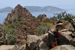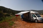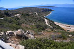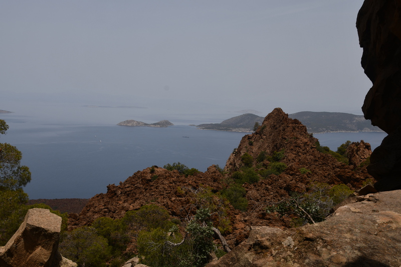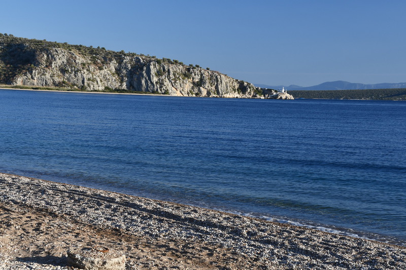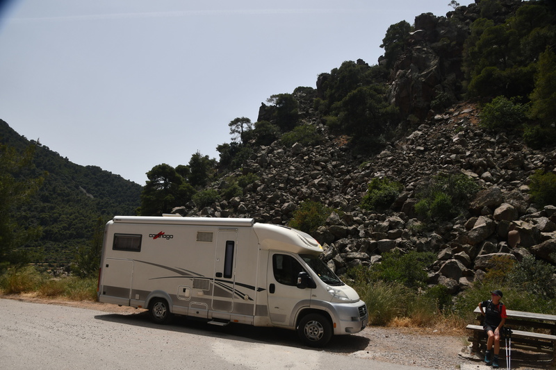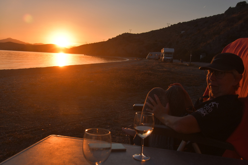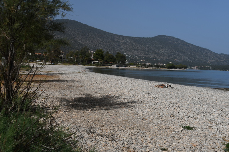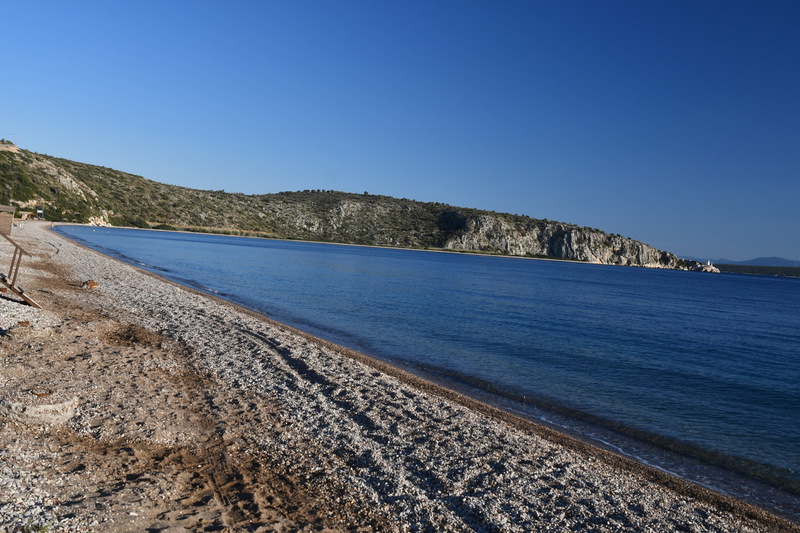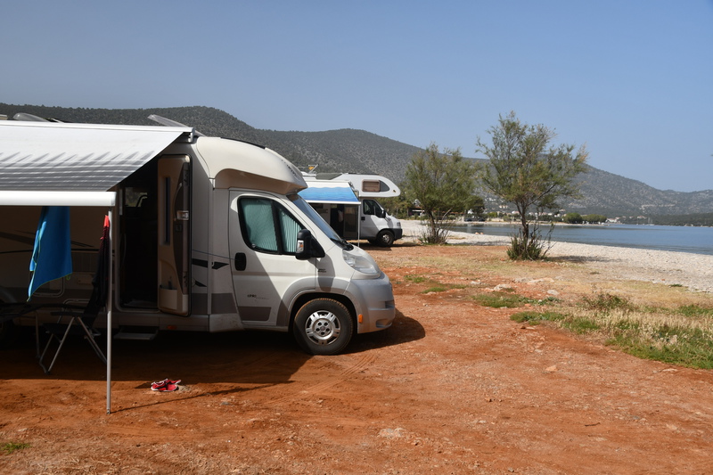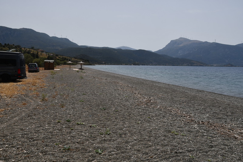 Heute geht es zur Halbinsel Methanon. Wir rumpeln an der Fischtaverne „Palaeokastro“ vorbei und erreichen wenige Kilometer später einen kleinen Wanderparkplatz. Die Wanderstiefel werden geschnürt, die Stöcke ausgepackt, und los geht es. Wir wandern hinauf zum „Volcano“, wo wir einen schönen Ausblick auf den Saronischen Golf haben. Über Stock und Stein geht es zurück. Wieder bei „Gretchen“ fahren wir nicht die gleiche Strecke zurück, sondern wollen die Halbinsel umrunden. Die Straße wird immer schmäler und auch immer schlechter. Bei zwei Wasserablaufrinnen, die wir überqueren, setzen wir auf. Als wir zu unserem Ausgangspunkt der „Inselrundfahrt“ ankommen, fahren wir in die Bucht bei Metamorphosis um unseren heutigen Übernachtungsplatz einzunehmen.