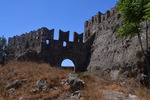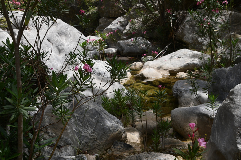 Nach dem Frühstück und einem Bad im Meer packen wir es wieder. Wir möchten nach Galatas. Doch wenige Kilometer nach unserem Start kommen wir zum Hinweisschild „Devil's Bridge“, also biegen wir ab. Im Örtchen Trizina stellen wir „Gretchen“ auf dem großen Parkplatz ab und rüsten uns zur Wanderung. Wir kommen vorbei an eine römischen Grabstätte und ein mittelalterliches Kastell. Wir erreichen die Teufelsbrücke, Mario macht ein Foto, und trotzdem ist uns nicht bewußt, dass dies die Brücke ist! Wir gehen über die Brücke, wenden uns nach rechts und wandern die Schlucht entlang immer höher – eine kleine Brücke ist nicht in Sicht, wir kehren um und wenden uns in die andere Richtung. Auch hier laufen wir auf schmalen Weg – bis wir auch hier zur Einsicht kommen – eine Brücke gibt es nicht. Erst als wir zurückkommen und kurz vor der kleinen Brücke, über die wir gekommen sind, schauen wir noch einmal hinab in die Schlucht und sehen wie schön es ist. Dann die Ernüchterung, am Fels bei der kleinen Brücke, steht in großer Schrift „Devil's Bridge“ - wer lesen kann ist klar im Vorteil. Hätten wir es jedoch gelesen, hätten wir die Wanderung in zwei Richtungen entlang der Schlucht nicht gemacht – was wirklich schade gewesen wäre. Wieder in Trizina angekommen besuchen wir die Taverna um einen Kaffee Fredo zu trinken. Wir fahren zurück auf die Hauptstraße und erreichen nach wenigen Kilometern Galatas. Wir stellen „Gretchen“ auf einem großen Parkplatz ab. Mit dem „Bootstaxi“ geht es von hier in wenigen Minuten auf die Insel Poros und ins gleichnamige Städtchen. Wir gehen die Promenade entlang und wenden uns später über Stufen hinauf zur Altstadt mit dem Glockenturm und auf der anderen Seite wieder hinunter. Wieder an der Promenade angekommen, setzen wir uns in eine Taverne und beobachten den Schiffsverkehr und die unterschiedlichsten Anlegemanöver. Dann geht es zurück nach Galatas. Der Platz an dem wir stehe ist nicht zum Baden geeignet und so fahren wir in die nächste Bucht. Hier befindet sich am Beginn einer Sackgasse ein Platz der uns zum Übernachten und Baden geeignet scheint. Direkt daneben eine „Beachbar“, hier kehren wir nach einem Bad ein.