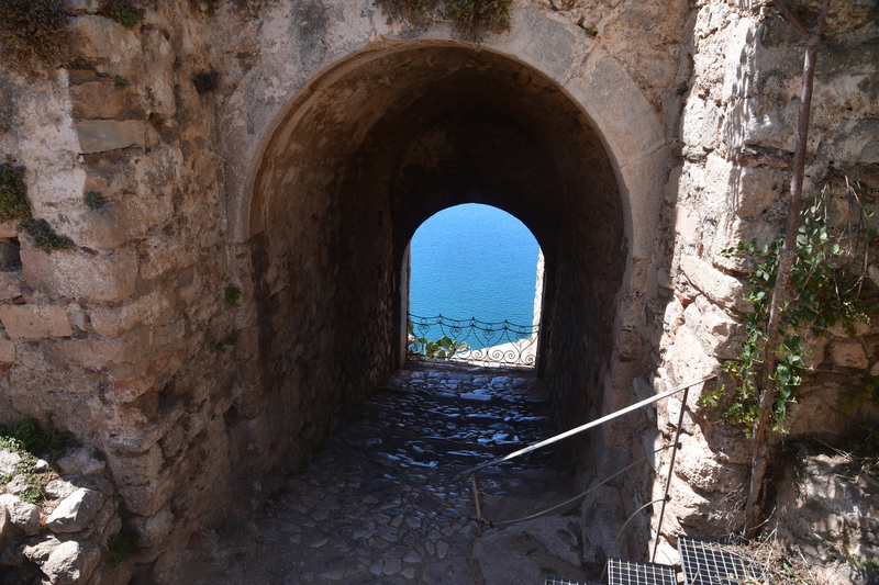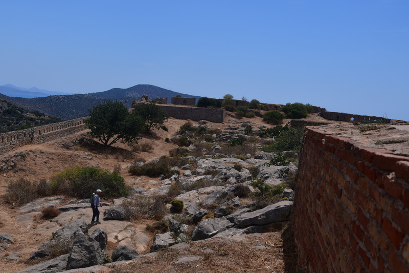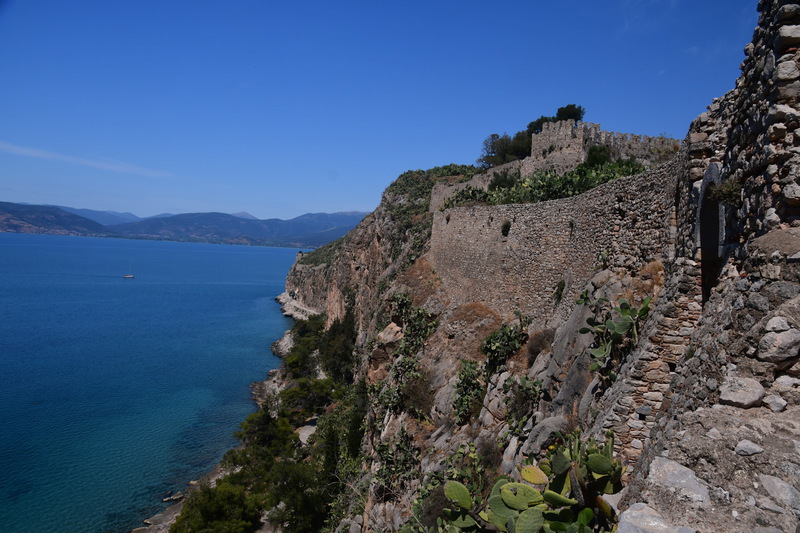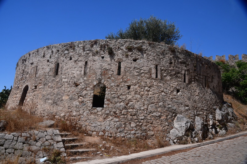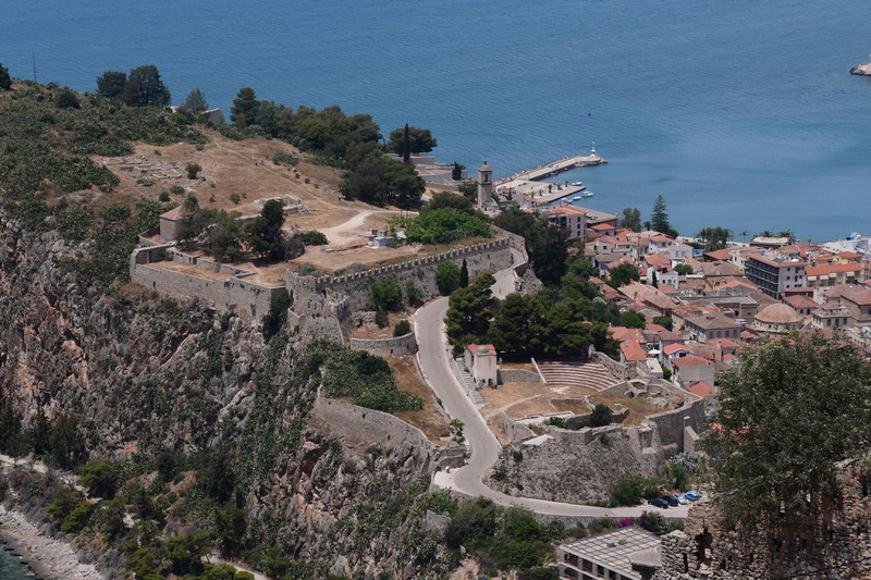 Da die kleinen Viecher auch morgens aktiv sind, verkneifen wir uns ein Frühstück im Freien. Wir fahren nach Nafplio, wo heute Markttag ist. Wir gehen über den Markt, kaufen für wenig Geld Gemüse, Obst, Thunfisch und wieder Garnelen. Wir bringen unsere Einkäufe zu „Gretchen“, verräumen alles und machen uns auf den Weg, die Stadt mit seinen Sehenswürdigkeiten zu erkunden. Wir gehen zum Fortress of Akronauplia, wo man einen schönen Blick auf den Hafen hat. Durch die Altstadt mit seinen schönen Gassen, am archäologischen Museum vorbei geht es zurück zu „Gretchen“. Jetzt geht es zur Festung Palamidi, diese kann man auch von der Altstadt aus zu Fuß über ca. 850 Stufen erreichen (das ersparen wir uns). Wir erkunden die Festungsanlage mit ihren verschiedenen Bastionen und haben von überall einen tollen Blick auf die Stadt und das Meer. Vor dem Hafen befindet sich eine kleine Insel mit einer venezianischen Festung aus dem 15. Jhr., diese ist nur mit de Boot erreichbar.