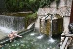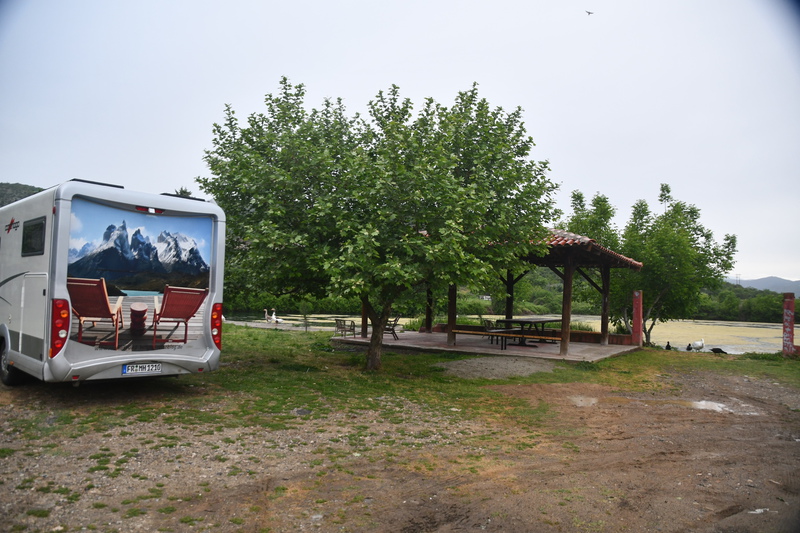 Heute scheint bei frischen 10° tatsächlich die Sonne. Wir fahren zum Weingut Alpha, welches, wie wir erzählt bekommen ein sehr junges Weingut (seit 2002) ist. Wir werden durch den Weinkeller mit Abfüllanlage geführt. Im Anschluss machen wir eine kleine Weinprobe und erwerben 2 Fl. Weißwein und 2 Fl. Rosé (die Weine sind sehr hochpreisig). Wir wollen heute noch nach Edessa, fahren deshalb zurück, an unserem Übernachtungsplatz vorbei um am See entlang auf die Hauptstraße zu kommen. Schon nach wenigen Kilometern werden wir jedoch ausgebremst, die Straße am See ist gesperrt, also müssen wir zurück. Dies hat aber auch wieder etwas gutes, denn so kommen wir in Aminteo zum Markt – also „Gretchen“ abstellen und über den Markt bummeln um Gemüse und Salat einzukaufen. Direkt am Marktplatz gibt es noch einen Bäcker und einen Metzger. So decken wir uns für die nächsten Tage mit Lebensmitteln ein. Gegen Mittag erreichen wir dann die heißen Bäder von Pozar und genießen es, mit Blick auf einen Bach mit Wasserfall im warmen Wasser zu liegen. Nach dieser schönen Erholung geht es weiter nach Edessa. Hier parken wir direkt am großen Wasserfall. Schlendern durch den Park zum Wasserrad und weiter in die Stadt. Vorbei am kleinen Wasserfall kommen wir, nach einigen Umweg, zum historischen Uhrturm und zur Kirche. Es ist später Nachmittag und alle Geschäfte haben geschlossen, deshalb wirkt die Stadt doch relativ leblos und wir gehen zurück. Der Platz auf dem wir stehen gefällt uns auch nicht und so fahren wir weiter und finden über Park4night einen ruhigen, schönen Platz an einem kleinen See/Teich an dem sich Gänse und Enten tummeln. Spät am Abend kommen noch zwei PKWs mit Zeltdach hinzu und so sind wir nicht ganz alleine.
