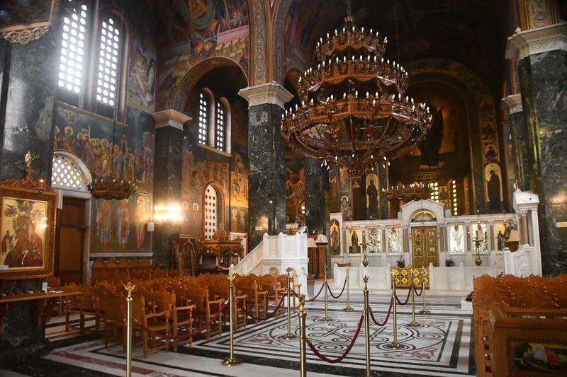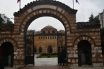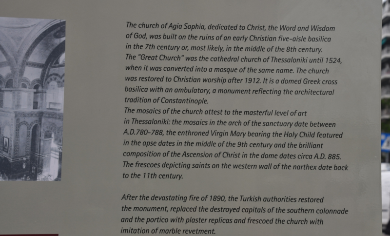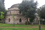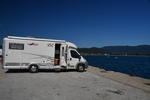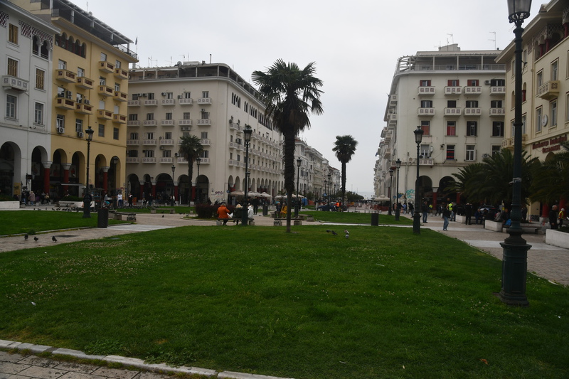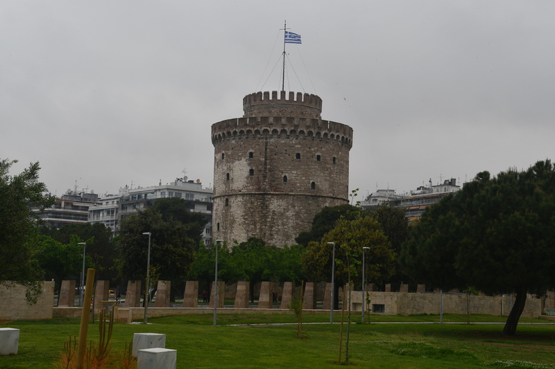 Und wieder hat es in der Nacht angefangen zu regnen. Der Himmel ist grau!!! Wir verlassen unseren schönen Schlafplatz bei Regen und dieser begleitet uns bis wir in Thessaloniki ankommen. Unterwegs machen wir nur einmal Halt, Mario geht in einen Baumarkt um Holzleim zu kaufen – an einer Bodenklappe ist Leimarbeit notwendig. Diese wird gleich verrichtet, als wir in Thessaloniki einen Parkplatz ergattert haben (war gar nicht so einfach). Bis zum Wahrzeichen, dem Weißen Turm sind es zu Fuß bestimmt 1,5 km, er ist unser erstes Ziel. Wir erwerben Tickets und betreten den Turm, der über 6 Stockwerke verfügt, in jeder Etage befindet sich eine Ausstellung gegliedert in die zeitliche Entwicklung von Thessaloniki. Wäre schönes Wetter, hätte man von oben einen tollen Blick auf die Stadt. Von hier aus erlaufen wir die Stadt und kommen an einigen Sehenswürdigkeiten, wie dem Triumphal Arch of Galerius, der Kirche Rotonda, der Kirche of Panagia Chalkeon, dem Hamam Bath und der Kirche Agia Sophia, vorbei. Die Agia Sophia konnten wir besichtigen, am eindruckvollsten waren die Kronleuchter. Im Gegensatz zu unseren Kath. Kirchen, ist es in allen, bisher besichtigten Kirchen eher dunkel, sie beeindrucken jedoch, durch die Fresken. Nach vielen, in ca. 4 Stunden, gelaufenen Kilometern kehren wir zu „Gretchen“ zurück. Da es in ganz Thessaloniki keinen einzigen Stellplatz und auch keine Möglichkeit gibt irgendwo zu übernachten fahren wir Richtung Kavala. Ca. 50 km bevor wir Kavala erreichen, verlassen wir die Autobahn um an die Küste zu kommen. In einem kleinen Ort finden wir direkt an der Küste einen ruhigen Platz. Gefühlt stehen wir zwar direkt an einer bewohnten Straße, die Häuser sind jedoch alle dunkel und sehen eher aus, wie Ferienunterkünfte – wir stören also niemand und niemand stört uns!