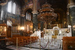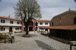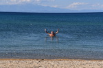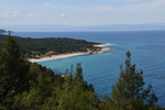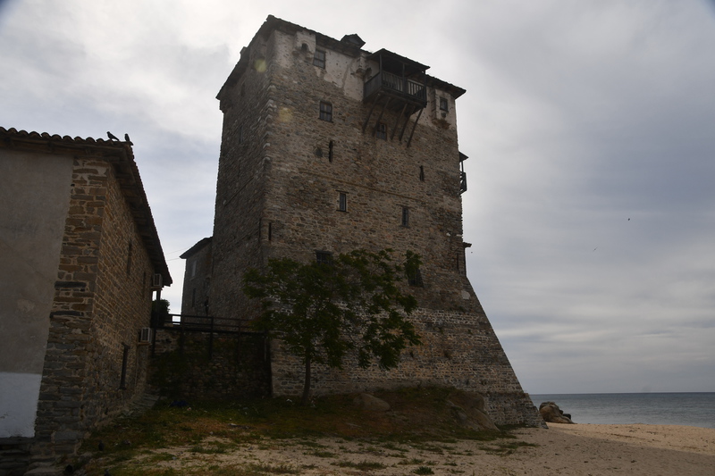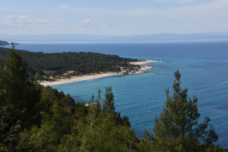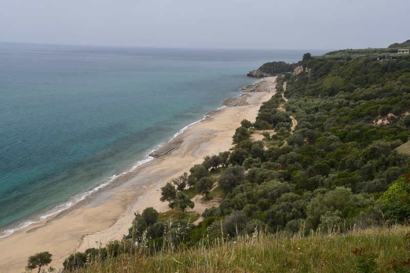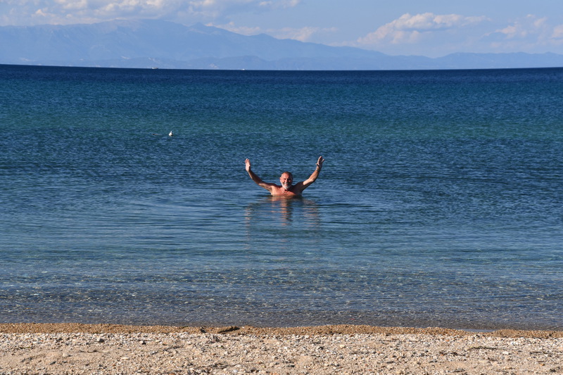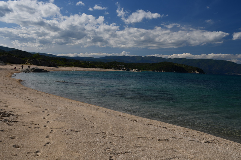 Als erstes fahren wir über Tripiti nach Ouranoupoli dem „Himmelsstädtchen“, das sich zu einer Touristenhochburg entwickelt hat. Um den byzantinischen Wehrturm aus dem 14. Jh. entwickelte sich um 1923 die kleine Gemeinde, die hauptsächlich von türkischen Flüchtlingen besiedelt wurde. Heute befindet sich im Turm ein Byzantinisches Museum. Der Ort ist außerdem der Grenzpunkt zwischen der weltlichen Gesellschaft und der abgegrenzten religiösen Welt der Klöster und Mönchsgemeinschaften auf dem heiligen Berg Athos. Zum heiligen Berg Athos dürfen nur Männer mit einer Erlaubnis (muss frühzeitig beantragt werden) aufsteigen. Der heilige Berg darf erst ab dem 1.5. bestiegen werden. Da ich nicht hin darf und Mario keine Erlaubnis hat, kehren wir dem Ort den Rücken. Wir fahren wieder einige Kilometer zurück bis wir in Ierissos den Abzweig nach Arnea erreichen – dort wollen wir hin. Arnea ist ein alter historischer Ort, der in der Mitte des 16. Jh. seinen Ursprung hat. Zu bewundern gibt es die alten Häuser, zwei Kirchen (wobei nur eine geöffnet war, diese hat uns jedoch durch ihre Malerei und herabhängende Leuchter, sehr beeindruckt, ) und das Rathaus mit Glockenturm. Nach dem Erwerb von Honig geht es weiter. Wir verlassen die Höhe um in den mittleren Finger Chalkidikis, Sithonia, zu kommen. Hier müssen wir feststellen, dass es an der Küstenlinie entlang keine, für uns erreichbare Stellplätze/Freistehplätze gibt. Die Küste ist zugebaut und an markanten Stellen sind Campingplätze (teilweise noch geschlossen) angesiedelt. So fahren wir bis kurz vor Sarti, wo wir in einen kleinen Hafen abbiegen. Hier liegen kleinere Fischerboote, auf denen die Fischer noch bei der Arbeit sind. Wir stellen „Gretchen“ ab, packen unsere Badesachen und gehen ein Stück die Bucht entlang. Hier gehen wir baden, das Wasser ist sauber und kalt. Wir beschließen, die Nacht hier zu verbringen!