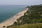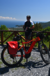 Heute wollen wir mal aktiv sein. Wir fahren mit „Gretchen“ bis Olimbiada. Stellen „Gretchen“ in den Schatten, laden unsere Fahrräder aus, packen eine von Marios Radtaschen und starten zu unserer ersten Radtour in diesem Jahr. Am Anfang biegen wir auf einen unbefestigten, matschigen Weg ab, werden aber von Arbeitern, die uns mit ihren Jeeps entgegenkommen, auf den richtigen Weg gewiesen. Sie fahren vor uns her, bis wir den richtigen Abzweig nehmen – das ist doch gelebte Gastfreundschaft!!! Wir möchten zum Dorf Vavara, das in einer Höhe von ca. 800 m liegt. Den Ort erreichen wir nach ca. 15 km. Die Straße war gut zu fahren, stellenweise sehr steil. In Vavara angekommen machen wir erst einmal Kaffeepause. Danach geht es noch einmal ein paar Höhenmeter hoch. Dann fast nur noch abwärts, bevor wir auf die Straße kommen, die wir nach oben genommen haben. Nach gefahrenen 32 km sind wir wieder an unserem Ausgangspunkt und somit bei „Gretchen“. Mit Stavros haben wir auch Chaldikidi erreicht und fahren jetzt auf dem Athos Finger nach N.Roda. Bevor wir N. Roda erreichen machen wir noch einen Abstecher zu einem Strand mit Skulpturen – leider ist hier Camping nicht erlaubt und wir fahren weiter. Wenige Kilometer später verlassen wir die Hauptstraße wieder und versuchen auf einem unbefestigten Weg einen geeigneten Platz zu finden, was wir auch schaffen. Mario geht baden – mir ist es zu kalt (nach der Radtour wurde ich noch nicht wieder warm). Wir richten uns ein und genießen mit Blick auf die Küstenlinie den Sonnenuntergang.