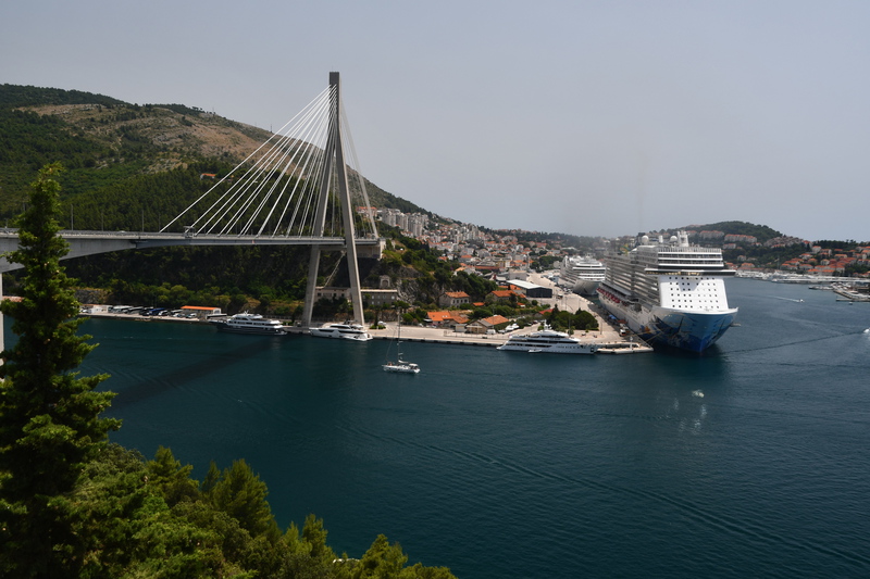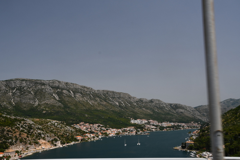 Wir kommen vor der Grenze von Montenegro zum ersten Mal in einen Stau, er hat eine Länge von ca. 2 km und endet am Grenzübergang. Die Ausreise sowie die Einreise nach Kroatien sind schnell erledigt, wir werden durchgewunken. Kroatien empfängt uns mit einer breiten gut ausgebauten Straße (fast schon langweilig). Es geht auf der Küstenstraße bis Dubrovnik. Hier sind spontane Stopps zum Baden leider, wegen der Felsküste und der nicht vorhandenen Parkplätze für Autos unserer Größenordnung nicht möglich. Im Hafen von Dubrovnik liegen zwei große Kreuzfahrtschiffe und es tummeln sich jede Menge großer und schöner Yachten vor der Stadt. Wir fahren bis zur Halbinsel Peljesac, wo wir im Städtchen Ston feststellen, dass wir hier schon 2016 waren und auf der Stadtmauer spaziert sind. Am Malostonski Kanal finden wir einen geeigneten Bade- und Übernachtungsplatz. Inzwischen hat uns die Hitze wieder eingeholt, wir haben 37° im Womo und 35 ° vor der Tür.