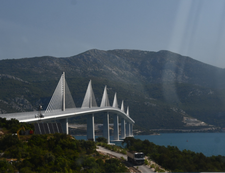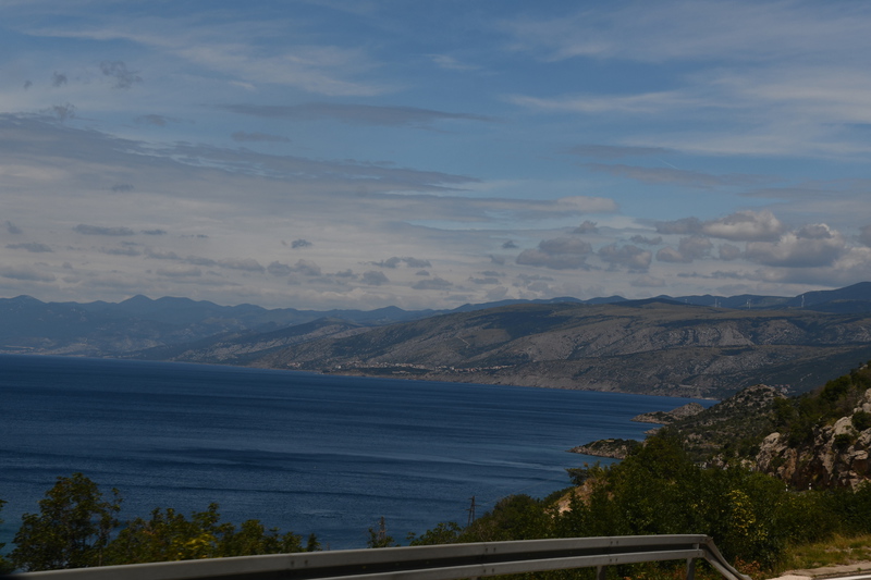 Aber von Anfang an. Wir verlassen die Halbinsel Peljesac über eine neue Brücke, die es möglich macht den Meerzugang von Bosnien (und damit einen Staatenwechsel) zu umfahren. Die Brücke ist im gleichen Stil gebaut wie die Brücke bei Dubrovnik. Die Landschaft ist sehr schön, jeder mögliche Zipfel am Meer der bebaut werden kann, ist bebaut. Durch die Steilküste gibt es nur wenige Möglichkeiten um ein Bad im Meer zu nehmen. An Plätzen, an denen dies möglich ist, stehen so viele Autos, dass für uns kein Platz ist. Freie Übernachtungsplätze gibt es hier keine, die Campingplätze sind extrem teuer (wir lesen Preise zwischen 75 und 120 €). Über unser Buch und Park4night finden wir einen möglichen Platz (Kosten: 9,50 €/Stunde) um Split zu besuchen. Das Blöde ist, wir kommen nicht hin, die Straßen sind gnadenlos verstopft und so verlieren wir die Lust.