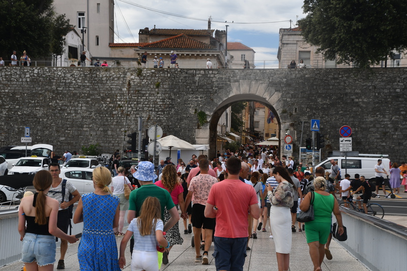 Heute geht es entlang der Küste entlang über Sibenik und Biograd nach Zadar. Wir fahren zum Hafen in Zadar in der Hoffnung, einen Parkplatz zu ergattern und stehen gleich im Stau. Wie schon gewohnt, sind wir erfolglos und so geht es wieder zurück, ebenfalls Stopp-und-Go. Neben einer Polizeistation und einem Supermarkt finden wir einen großen, Parkplatz, für den nicht einmal Gebühren erhoben werden. Jetzt machen wir uns zu Fuß auf den Weg zur Altstadt, die wir nach ca. einer halben Stunde erreichen. Wir tauchen ein in das quirlige Leben, das in den schmalen Gassen pulsiert. Vorbei am Dom geht es zum berühmten 5-Brunnen-Platz. Die weiteren Höhepunkte des Bummels sind die Meeresorgel und der „Gruß an die Sonne“, ein sich auf der Uferpromenade befindlicher Kreis aus ca. 300 Glasplatten und einem Durchmesser von 22 m. Nach ca. 2 Stunden kehren wir zu „Gretchen“ zurück und verlassen Zadar. 40 km hinter Zadar kommen wir in Seline zum Campingplatz Pisak, wo wir unsere heutige Etappe abschließen.