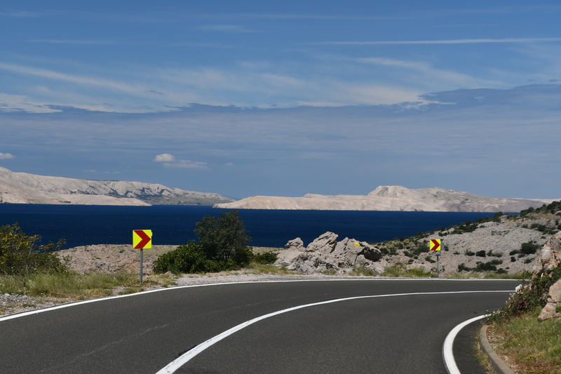 Für heute haben wir keine Besichtigungen geplant. Wir genießen die Fahrt auf der Küstenstraße, von der man auf der einen Seite das Velebit-Gebirge und dem Nationalpark Sjeverni vor Augen hat, auf der anderen Seite blickt man über einen schmalen Meer-Streifen auf die karge Halbinsel Pag. Wir legen wieder ca. 130 km zurück, bevor wir mit Blick auf die Insel Krk unseren heutigen Campingplatz erreichen