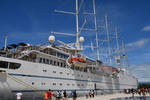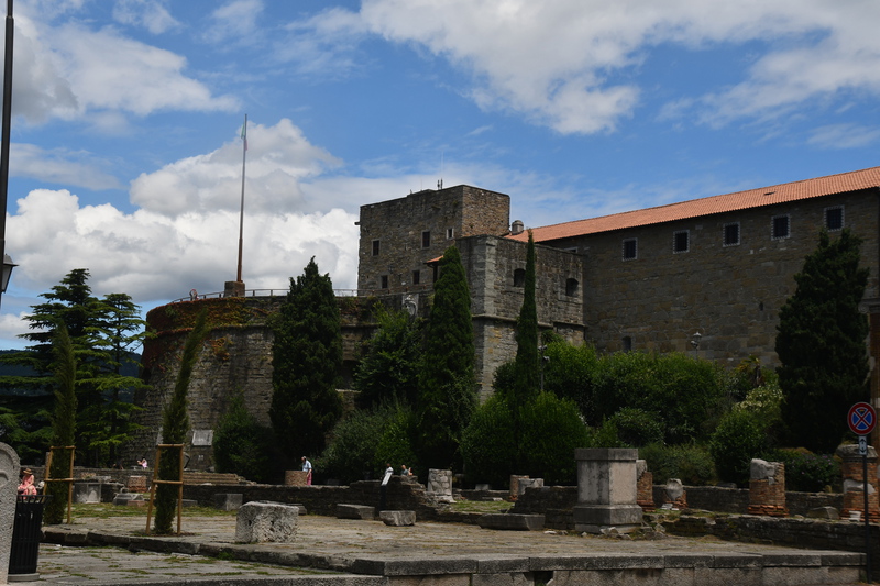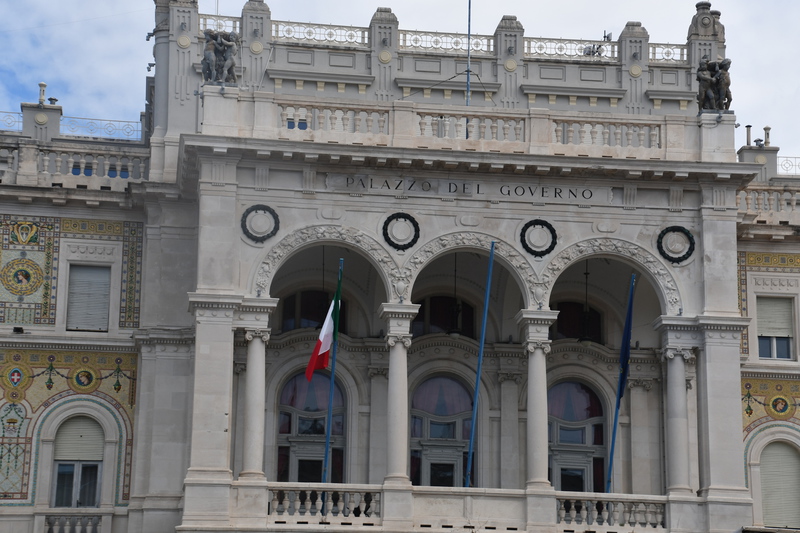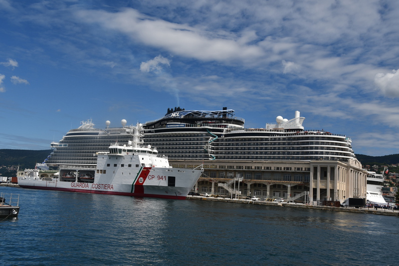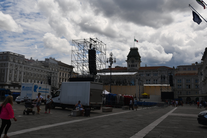 Heute sagen wir Kroatien tschüß. Beim Grenzübergang nach Slowenien haben wir freie Durchfahrt. Über Slowenien reisen wir nach Italien, auch da finden keine Grenzkontrollen statt und so kommen wir bereits um 12 Uhr in Triest an und haben auch keine Probleme einen Parkplatz im Hafenbereich zu finden. Im Hafen liegt ein Kreuzfahrtschiff, dass ca. 3.800 Passagiere und über 1.800 Mann Besatzung hat, das Schiff der Hafenpolizei, da daneben liegt sieht dagegen winzig klein aus. Unser Spaziergang führt uns zu einem Platz auf dem eine große Bühne aufgebaut ist und gerade Proben stattfinden. Wir kommen in den Genuss der guten Musik. Die Gassen, die zum Dom führen steigen steil und holprig den Berg hinauf. Nach gut 3 Stunden kehren zum Parkplatz zurück. Mario hat als Ziel das Örtchen Grado ausgesucht, das sich ca. 50 km von Triest entfernt befindet. Heute wollen wir noch einmal in der Adria baden. Es gibt hier einen breiten Sandstrand, das Wasser ist flach und hat „Badewannentemperatur“. Nachdem wir heute morgen in Kroatien in schönem kalten Wasser gebadet haben, sind wir jetzt etwas enttäuscht.