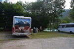 Wir sind beide schon sehr früh wach und so frühstücken wir bereits um 7.30 Uhr und verlassen den Platz schon vor 9 Uhr. Jetzt verlassen wir endgültig die Küste, der Heimweg führt uns durch die Bergwelt Italiens. Bei Sonnenschein erreichen wir bereits kurz nach 11 Uhr einen wunderschönen Platz am Lago di Barcis. Nach einem kurzen Bad im See (er ist so kalt, dass ich nur rein laufe, Mario spritzt mich nass, dann geht es schon wieder raus). Wir machen uns auf zu einem Spaziergang entlang des Sees zum Ort – aus diesem Spaziergang wird dann aber eine schöne, ca. 3 stündige Wanderung um den ganzen See. Den Rest des Nachmittags genießen wir neben „Gretchen“. Heute wird wieder gegrillt, nebenher schaue ich das Fußballspiel Deutschland – Spanien.