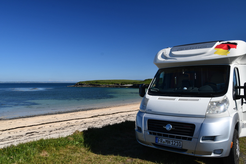 Heute wollen wir den Atlantik erreichen. Wir bewegen uns in einem Gebiet mit vielen Seen und so ist die logische Folge, dass wir schon nach kurzer Fahrzeit den Brackley Lake erreichen, der uns zum Baden einlädt. Parallel zur Grenze fahren wir bis zum Upper Lough MacNean Lake und an diesem entlang (der Blick zum See bleibt meist durch Bäume versperrt). Wir finden dennoch ein Plätzchen für eine Kaffeepause mit Blick auf den See. In der Nähe von Bundoran erreichen wir dann den Atlantik und befahren den „Wild Atlantic Way“in Richtung Norden. Eine erste Pause am Atlantik machen wir am Bellal Strand. Wir fahren auf den Strand, machen einen Spaziergang und, als wir zurück sind, holen wir unsere Stühle herauf um mit Blick auf das Wasser die Sonne zu genießen. Da wir nicht wissen, wie hoch das Wasser ansteigt entschließen wir uns dagegen hier zu übernachten. Am späten Nachmittag fahren wir also weiter. Wir haben den Strand von Saint John's Point als Übernachtungsplatz in's Auge gefasst. Was sich als gute Entscheidung erweist. Die Straße zu diesem Standort ist schmal, aber, da kaum Verkehr ist, gut zu fahren. Direkt, etwas erhöht hinter dem Strand, auf einem Wiesenstreifen können wir stehen und den Abend und die Nacht verbringen.