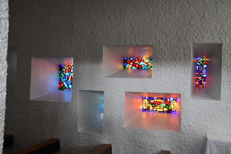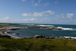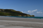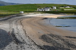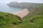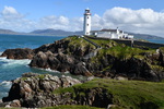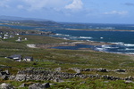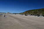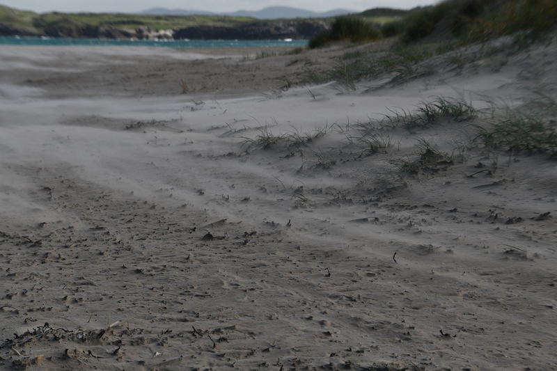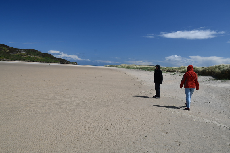 Während dem Frühstück regnet es und die Vorhersage für heute hört sich nicht gut an. Wir fahren wieder zur Küste und an dieser mehr oder weniger dicht entlang. Der Regen hat schon lange aufgehört und wir haben einen Wolken-/Sonenmix mit starkem Wind. Auf der R257 fahren wir bis Dunfanaghy, einem lebhaften Städtchen, stellen die Womo's ab. Es ist Ebbe und wir laufen auf dem Strand, vorbei an Dünen, die sich rechts von uns befinden, bis wir das Wasser erreichen. Wir treten den Rückweg an, gehen zwischen Dünen entlang um dann auf die Straße zu kommen. Beim nächsten Halt ist etwas Kultur angesagt. Wir besuchen in Creeslough die St. Michael's Church, ein blütenweißer Betonbau aus dem Jahre 1971. Die Kirche ist karg ausgestattet, hat aber 5 unterschiedlich große bunte Glasfenster die man bewundern kann. Immer wieder halten wir an um Fotos zu machen, bleiben aber nie lange stehen, da der Wind kalt ins Gesicht bläst. Der nächste längere Stopp ist am Leuchtturm von Fanad Head angebracht. Hier lassen wir uns, bei einem Spaziergang, ordentlich durchblasen. Wir gehen bis zum Leuchtturm und anschließend auf die gegenüberliegende Grasebene um einen Blick in das unter uns und um die Felsen unter dem Leuchtturm tosende Wasser zu bestaunen, das bei diesem Wind gegen die Felsen schlägt. Von hier sind es dann nur noch wenige Kilometer bis Portsalon, wo wir mit Blick auf das Pier und in die Bucht, die einen Sandstrand hat, einen schönen Standplatz finden.