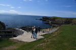 Als wir aufbrechen schwimmen die Robben im Hafenbecken herum, eine hat es sich sogar auf den Felsen „gemütlich“ gemacht. Wir fahren Richtung Nordirland und bemerken am Wegesrand immer wieder, dass die schönen Parkplätze mit Meerblick für uns mit Höhenbegrenzungsbalken versperrt sind, was wirklich schade ist, da wirklich nichts los ist, aber wir nicht einmal eine kurze Pause machen können um die Gegend zu genießen. Wir fahren zum Jachthafen von Carlingford auf einen ausgewiesenen Platz. Inzwischen scheint auch die Sonne wieder (heute morgen hatten wir viele Wolken) und wir machen uns auf den Weg in das Städtchen. Scarlett und ich machen einen Abstecher, einige Treppen hinauf zum Carlingford Castle, während die Männer sich die Fischerboote anschauen, die, wegen Ebbe, auf dem Trockenen liegen. Gemeinsam geht es anschließend weiter durch die Gassen des Ortes. In einem urigen Pub, der auch Essen anbietet, machen wir Pause mit „Fish and Chips“ und einem Bier. Wir staunen wie voll an einem Montagmittag der Pub ist. Gestärkt machen wir uns wieder auf den Rückweg, angekommen holten wir unsere Stühle aus den Autos, wobei Thomas 2 Dosen Bier herausfallen und platzen. Damit das ganze Bier nicht verloren geht kippen wir den Rest in ein Weizenbierglas. Nach dieser Aktion gibt es Kaffee und Kuchen. Mario macht sich daran unseren Blog zu bearbeiten, Thomas beschäftigt sich mit unserer Weiterfahrt und wir lesen. Heute ist es zum Grillen zu kalt und so kommt das Fleisch in die Pfanne. Der heutige Abend wird mit Spielen verbracht.