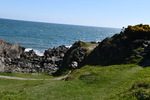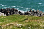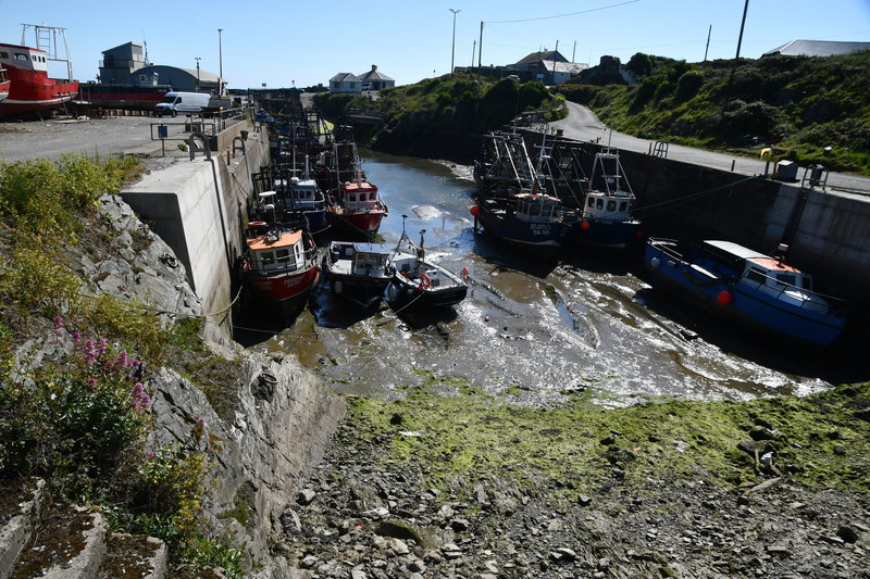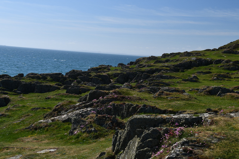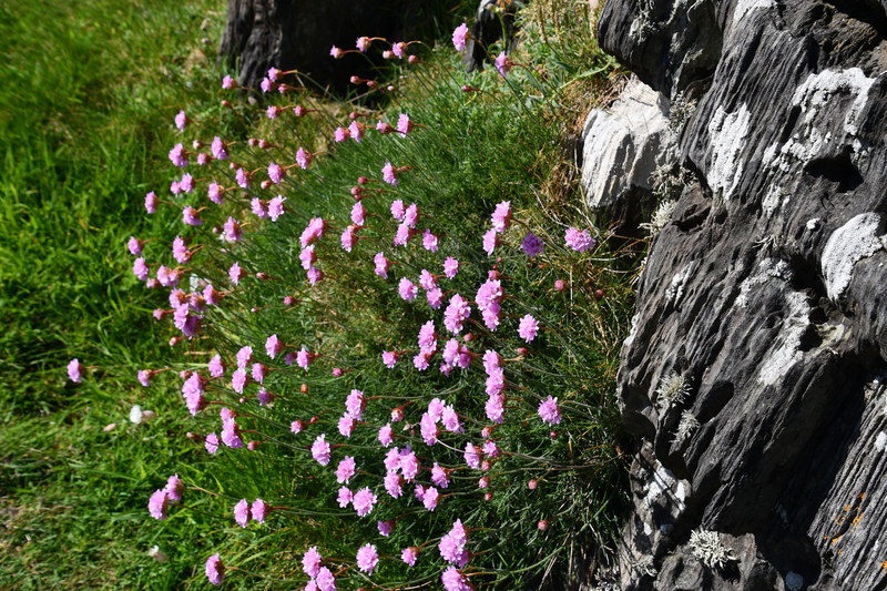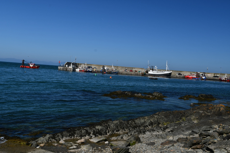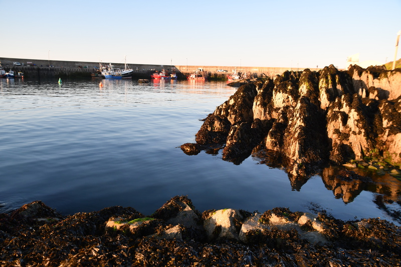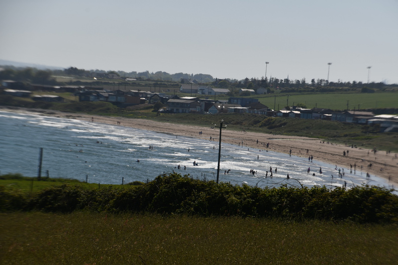 Wir verlassen unseren Platz und somit auch Dublin. Angesichts des schönen Wetters haben wir uns entschieden nicht weit zu fahren. Wir benötigen schon für die Fahrt durch Dublin 1 ½ bis 2 Stunden. Danach fährt es sich angenehm immer wieder mit Blick auf die Küste. In Skerries, wo wir Kaffeepause machen möchten, ist leider für Fahrzeuge unserer Größe kein Platz zu finden und so geht es weiter, wir scheitern immer wieder an Höhenbegrenzungsbalken. Kaffeepause machen wir dann auf einem Parkstreifen entlang einer Seitenstraße. Bei Clogher Head gegenüber de kleinen Hafen richten wir uns dann ein. Da unsere Männer einige Zeit damit beschäftigt sind, die Fahrzeuge einigermaßen auszurichten, machen wir Frauen einen Spaziergang oberhalb der Klippen (traumhafte Ausblicke). Oberhalb des Hafenbereichs steht ein Verkaufswagen, der jedes Wochenende „Fish and Chips“ anbietet (die Warteschlange ist endlos), daneben ein kleines Fischgeschäft, wo wir später gemeinsam mit unseren Männern Fisch kaufen, der am Abend auf den Grill kommt.