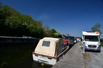 Wir bewegen uns wieder Richtung Dublin. Nach ca. 100 km haben wir unser Tagesziel, den „Grand Canal“ bei Lowtown erreicht. Nach einer Kaffeepause machen wir uns zu Fuß auf den Weg. Wir gehen am Kanal entlang, überqueren 2 Brücken und kommen nach einem großen Umweg wieder zurück. Auf dem Steg am Kanal sitzend schauen wir einem Pärchen bei Richten (reparieren des Bootes)zu, was vor allen Dingen Mario's Aufmerksamkeit erregt. Nach einem kurzen Abendspaziergang machen wir es uns im Wagen gemütlich.