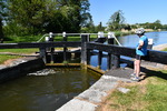Wir nehmen nach dem Frühstück die Räder um am Grand Canal entlang nach Naas zu fahren. Auf dem Hinweg, fahren wir einen kleinen Umweg, weil wir den Einstieg zum direkt am Kanal entlang führenden Weg nicht getroffen haben, was aber nicht gravierend ist. Wir kommen wieder auf den Kanalweg, machen Halt, um beim Schleusenvorgang zuzuschauen (an unserem Weg gibt es insgesamt 5 Schleusen. Einen weiteren Halt machen wir zwangsweise: Mario möchte absteigen und bekommt seinen Fuß nicht aus dem Klickpedal. Er bleibt mit einem Fuß am Boden stehen und ich ziehe ihm den anderen Schuh aus, damit er absteigen kann. Jetzt ist erst einmal die Reparatur angesagt; er dauert eine ganze Weile bis er Schuh und Pedal von einander getrennt hat. In der Sohle hatte sich eine Schraube gelöst, nach dem das Problem gelöst war ging es dann geradewegs nach Naas. Man hat nicht viel verpasst, wenn man dieses Städtchen nicht gesehen hat, aber der Kaffee war sehr gut. Als wir zurückkommen haben wir statt 30, 40 Kilometer gefahren!