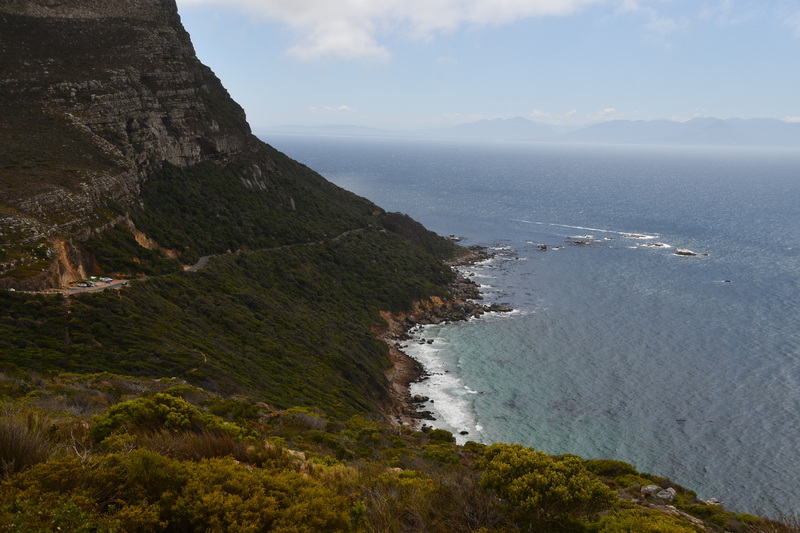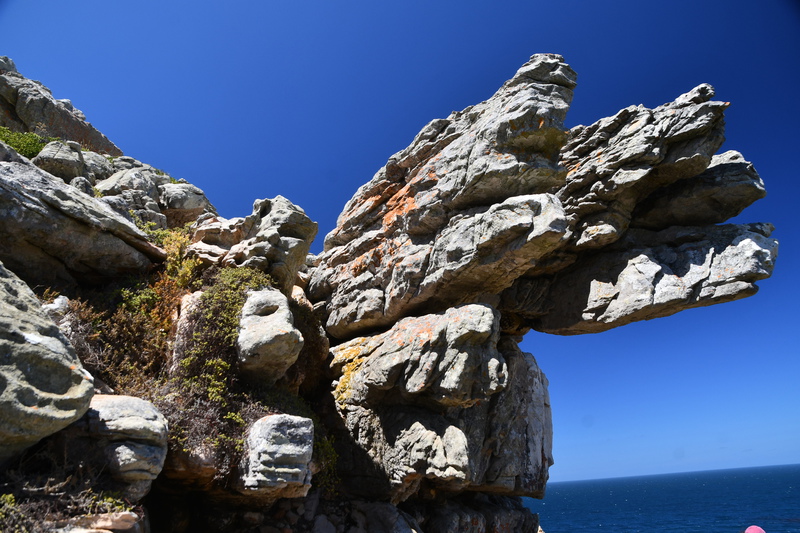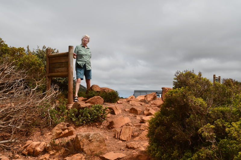 Nach einer guten ersten Nacht in unserem Aufstellzelt machen wir Frühstück. Es gibt nur ein Gaskochfeld, welches für unsere kleine Espresso-Kanne etwas zu groß ist. Mario holt den Grillrost und legt ihn auf die Flamme, er fängt an zu glühen – so geht es nicht. Nach einigem rumprobieren, schafft er es die Flamme zu regulieren und so gibt es, nach dem wir auch Wasser gekocht haben unseren ersten Kaffee in Südafrika. Anschließend stellen wir Tisch und Stühle auf die Seite, verschließen alle Fächer am Auto und fahren zurück nach Kapstadt. Im Navi haben wir die Tafelbergroad als Ziel eingegeben, fahren aber letztendlich zum Tafelberg nach der Ausschilderung in der Stadt. Am Tafelberg angekommen haben wir Glück, denn wir bekommen relativ nahe an der Seilbahn einen Parkplatz (es war der letzte freie Platz). Wir haben uns schon auf eine lange Wartezeit am Ticketschalter und an der Gondel eingestellt (im Buch stand es kann jeweils bis zu einer Stunde dauern) aber es war am Ticketschalter nichts los und so sind wir, mit der übernächsten Gondel nach oben gefahren. Die Gondeln kommen aus der Schweiz und drehen sich während der Fahrt einmal um die eigene Achse. Von oben hatten wir einen tollen Blick auf Kapstadt, den Hafen und weitere Buchten. Den Lion`s Head sahen wir zum Greifen nahe. Nach dem Aussteigen machen wir eine kleine Wanderung auf der der Hochfläche und hatten die unterschiedlichsten tollen Ausblicke in Schluchten, nach Kapstadt, zum Lion`s Head und auf die unter uns liegenden Strände. Einzig die „Twelve Apostel“ bekamen wir nicht zu sehen. Diese Berggruppe versteckte sich in dichten Wolken. Nach über 2 Stunden verlassen wir den Tafelberg wieder und kehren zum