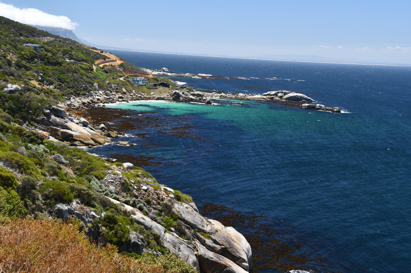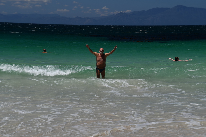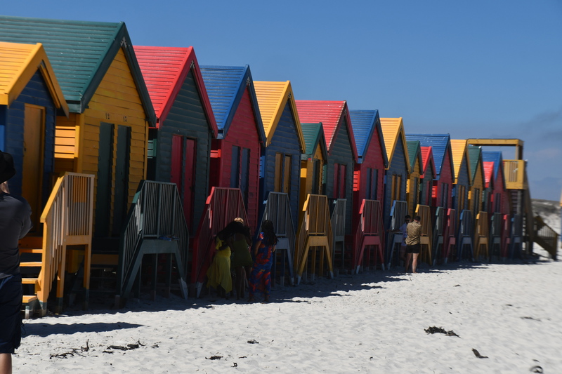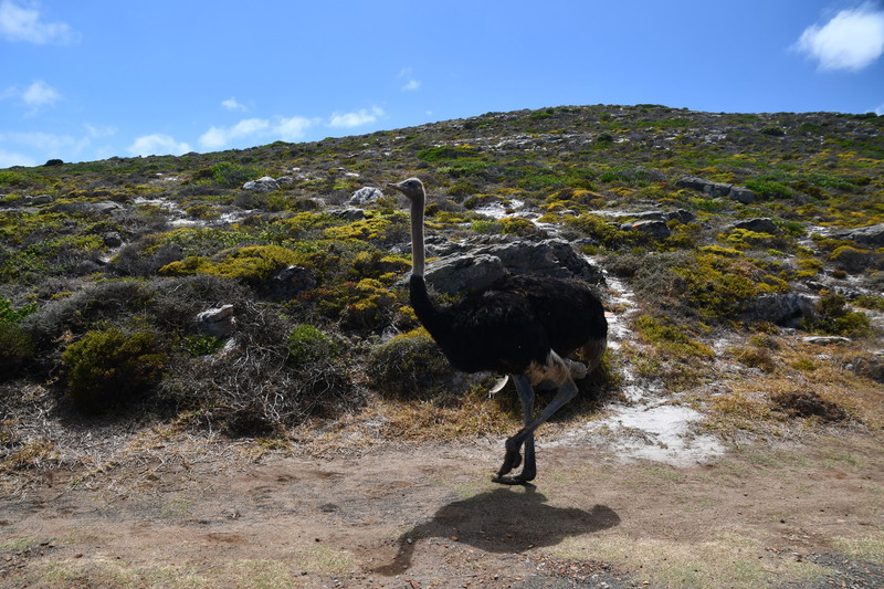 Wir verlassen unseren Campingplatz und kommen schon nach wenigen Minuten zum Leuchtturm im Naturpark Slangkop, wo wir einen kurzen Spaziergang machen. Weiter fahren wir zum Kap der guten Hoffnung. Bevor wir zum Kap kommen müssen wir Eintritt bezahlen. Wir fahren durch eine wunderbare Natur immer mit Blick auf das Meer und den Küstenstreifen. Plötzlich tauchen im Gebüsch am Straßenrand Strauße auf. Das Kap selbst habe ich mir spektakulärer vorgestellt. Da kaum Wind geht, gibt es auch keine großen Wellen. Wir besteigen eine felsige Anhöhe um die ganze Sache von oben zu betrachten. Die Aussicht ist einfach nur schön! Wieder unten angekommen setzen wir unsere Fahrt fort. Wir erreichen als erstes das Örtchen Simon`s Town – hier kaufen wir uns ein Fischbrötchen, das wir während der Weiterfahrt (bzw. Stau stehen) verzehren. Über Fish Hoek gelangen wir anschließend nach Muizenberg wo wir einen Strandspaziergang machen und die bunten Strandhäuser fotografieren können. Bevor wir jedoch Muizenberg erreichen, gelangen wir zur Boulder Beach, das Auto wird geparkt, wir ziehen unsere Badesachen an und gehen zum ersten Mal im Meer schwimmen – herrlich. Unser heutiges Ziel ist Stellenbosch, die Weinhauptstadt Südafrikas. Leider gibt es hier überhaupt keine Campingplätze und so fahren wir nach einem Bummel und dem Genuss eines Gläschen Weines in diesem umtriebigen Städtchen weiter. Wir haben einen Campingplatz bei Franschhoek gefunden, diesen streben wir jetzt an. Wir fahren durch das bergige Weinland zu unserem Ziel und stehen plötzlich vor einem verschlossenen Tor zum Campingplatz. Wir können über Telefon niemanden erreichen und überlegen schon was wir nun machen. Ein Campinggast kommt mit seinem Fahrzeug zum Tor und lässt uns hinein, er fährt hinaus. Wenige Meter weiter stehen wir vor dem nächsten verschlossenen Tor, kein Mensch kommt. Anscheinend hat der ausfahrende bemerkt, dass wir nicht weiter kommen und so dreht er um und öffnet uns das Tor. Es gibt keine Anmeldung, wir unterhalten uns mit anderen Gästen und richten uns für die Nacht ein.