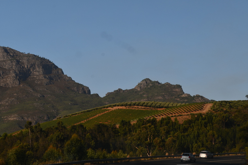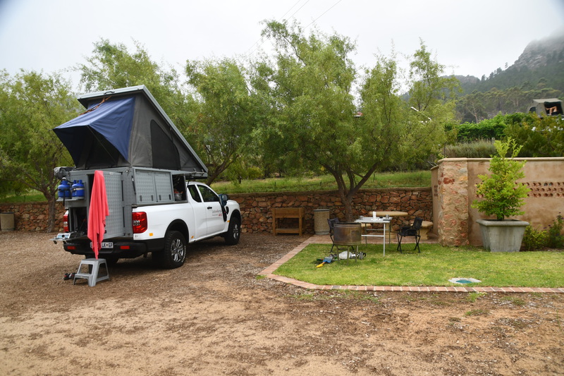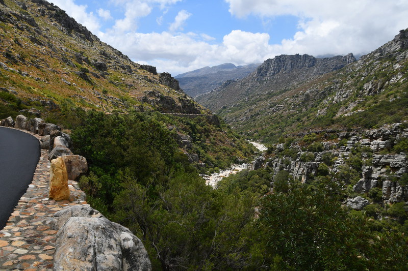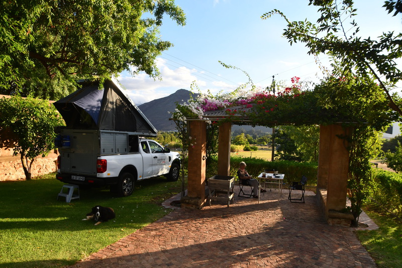 Die Nacht war so lala – der Wind hat unsere Stangen aus dem Dachzelt geweht und so hat die Plane die halbe Nacht auf das Moskitonetz geschlagen. Gegen 2 Uhr lässt der Wind nach und ich kann schlafen (Mario hat von all dem „Lärm“ nichts mitbekommen. Gegen 8.30 Uhr gibt es Frühstück, anschließend planen wir ganz grob den Tagesablauf und warten auf eine Info ob wir eine weitere Nacht auf dem Platz bleiben können oder nicht. Es ist nach 10 Uhr als Eunike kommt und uns einen anderen Platz zuweist und erklärt wo unser Badezimmer ist, dieser ist im Moment noch belegt, wird aber um 11 Uhr frei, wir warten also bis wir unseren Tisch und die Stühle auf den anderen Platz stellen können. Als wir von dem abreisenden Gast den Torschlüssel bekommen brechen wir zur Erkundung des Weinbaugebietes auf. Wir fahren über Paarl nach Wellington. Der Halt beim Weingut Oude Wellington war nicht von Erfolg gekrönt (wir durften uns alles anschauen, aber das Restaurant war noch nicht zu einem Ausschank bereit). Nun wollen wir über den Bainskloofpass fahren. Die Passstraße ist 18km lang, die Passhöhe liegt auf 594 Metern – eine Straße mit vielen engen Kurven und grandiosen Ausblicken. Nach dieser tollen Fahrt erreichen wir Wocester, wo wir einen kleinen Einkauf erledigen. Es bietet sich in dieser Stadt nichts besonderes und so fahren wir recht zügig weiter Richtung Franschhoek Pass. Soweit unser Auge reicht sind Reben und Berge zu sehen. Nun machen wir einen weiteren Versuch ein Weingut zu besichtigen – und wieder haben wir Pech, wir sind zu spät (das Weingut schließt samstags um 15 Uhr). Als wir dann die Passstraße erreichen stehen wir erst einmal eine lange Zeit vor einer „Roten Ampel“ - es sind Bauarbeiten im Gange. Als es dann los geht, genießen wir die Fahrt durch die Berge mit Blick in das Tal mit seinem Weinbaugebiet. Es ist 17 Uhr als wir durch das schöne Örtchen Franschhoek bummeln und beschließen angesichts der schönen Kneipen und Restaurants hier einzukehren. Für heute bleibt unsere Küche kalt. Mario gönnt sich ein „Kudu-Steak“ und ich eine Portion Muscheln (lecker!!!!!). So gesättigt treten wir den „Heimweg“ zu unserem Campingplatz an. Mit Blick auf die Berge erleben wir einen schönen Abend.