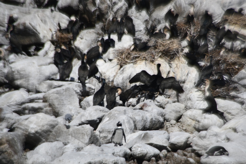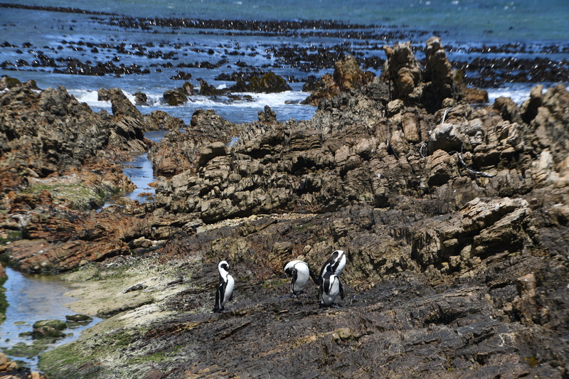 Wir verlassen unseren schönen Platz und fahren zum Weingut Boschendal. Wir erkunden die Gärten des Weingutes, schauen uns das Haupthaus an (die Weinprobe sparen wir uns, denn wir bzw. Mario muss ja noch Auto fahren). Im Gartenrestaurant trinkt Mario einen Cappuccino und ich probiere ein Gläschen Rose Sekt. So „gestärkt“ fahren wir weiter und zwar auf die R 44, Küstenstraße. Von Gordon`s Bay zieht sich die „Cape Whale Coast“ bis Hermanus. Hier tummeln sich zwischen Juni und September Wale und bringen ihre Kinder zur Welt. In der Pringle Bay mit beängstigend gebeugten Hangklipfelsen fahren wir kurz vor den Leuchtturm. Die Felsen verstecken sich jedoch in den Wolken und so machen wir einen Spaziergang zu den Dünen, wir spielen mit dem Gedanken hier baden zu gehen – die Wellen sind jedoch viel zu hoch, der Wind zu stürmisch. Wir fahren bis Betty`s Bay, stellen unser Auto ab und laufen zum Strand mit der Pinguinkolonie. Diese Pinguinart mit schwarzen Füßen gibt es nur in Südafrika, sie können bis zu 65 cm groß werden. Pinguine zu bewundern macht immer wieder Freude. Wir fahren weiter, im Örtchen Kleinmond haben wir einen Campingplatz ausgemacht, den wir anfahren. Wir sind fast alleine auf dem Platz. Richten uns ein und beginnen zu kochen. Heute gibt es Gemüsepfanne (Topf). Wir sind gerade mit Essen und Geschirrspülen fertig, als es zu regnen beginnt.