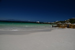 Die Nacht war ok. Wir landen kurz vor 11 Uhr in Kapstadt, holen unsere Koffer. Danach führt uns der erste Weg zu einem Schalter, an dem Mario eine Sim-Karte erwirbt (die uns evtl. für den gesamten Urlaub ausreicht), danach suchen wir uns einen Geldautomaten, an dem wir zunächst scheitern. Die uns nachfolgenden schaffen es und so unternehmen wir einen weiteren Versuch – und siehe da, es funktioniert. Nun sind wir mit Geld und Telefonkarte ausgestattet und begeben uns auf den Weg zu Avis. Hier werden wir schon erwartet, ein Wagen steht bereit um uns zur Autovermietstation zu bringen. Nach dem Papierkram und einer gründlichen Einweisung des Autos machen wir uns gegen 15 Uhr auf den Weg. Jetzt steht ein Großeinkauf auf dem Plan, als dieser getätigt ist geben wir im Navi den von uns ausgesuchten Campingplatz in Kommetjie ein, den wir nach einer weiteren Stunde erreichen. Inzwischen ist es später Nachmittag , wir leihen uns bei unseren Nachbarn (ebenfalls Deutsche) ein Bier (das hatten wir bei unserem Einkauf leider vergessen), wir trinken dieses mit Genuss und machen uns anschließend zu einem Spaziergang zum Strand auf den Weg.