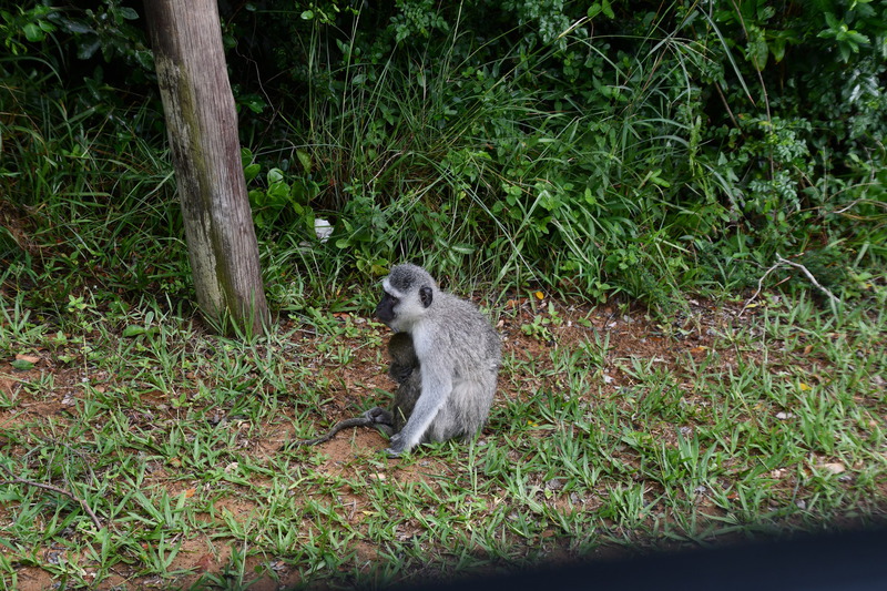 Nach einer guten Nacht und einem guten Frühstück im Hotel verlassen wir St. Lucia wieder um zum Cape Vidal, das in einem Naturschutzgebiet liegt, zu fahren. Es sind nur knapp 40 km, auf denen uns aber jede Menge Affen, kleine Antilopen und sogar ein Nashorn begegnen. Das Nashorn hielt sich allerdings etwas entfernt der Straße auf. Wir erwerben für den Park wieder ein Permit und für den Campingplatz später eine Genehmigung zum übernachten. Bevor wir zum Campinglatz fahren gehen wir erst einmal baden. Durch vorgelagerte Riffe ist der Indische Ozean hier etwas ruhiger, die Wellen haben eine angenehme Größe. Mario ist heute bei der Platzwahl sehr wählerisch und so fahren wir erst einmal über den ganzen Platz bevor er eine Stelle erblickt, auf die er sich gerne stellen will. Für heute war es das. Im übrigen stehen überall Schilder, die vor wilden Tieren warnen, bis jetzt sind uns aber nur Affen (Meerkatzen) begegnet – einer hatte es sich, als wir baden waren, sogar auf unserem Dach gemütlich gemacht.