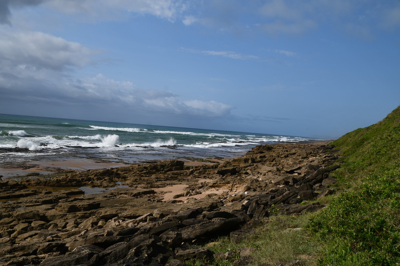 Wir fahren in den Bereich des Campingplatzes, der sehr gut besucht ist. Richten uns ein und trinken Kaffee. Gegen 15.30 Uhr nehmen wir nochmal unsere Badesachen und laufen zum Strand. Inzwischen ist Flut, die Wellen überschlagen sich am Riff und so kühlen wir uns nur im Meer ab und setzen uns anschließend an den Strand und beobachten die Krebse, die sich am Strand aufhalten, hin und her rennen und Löcher buddeln – ein interessantes Schauspiel.