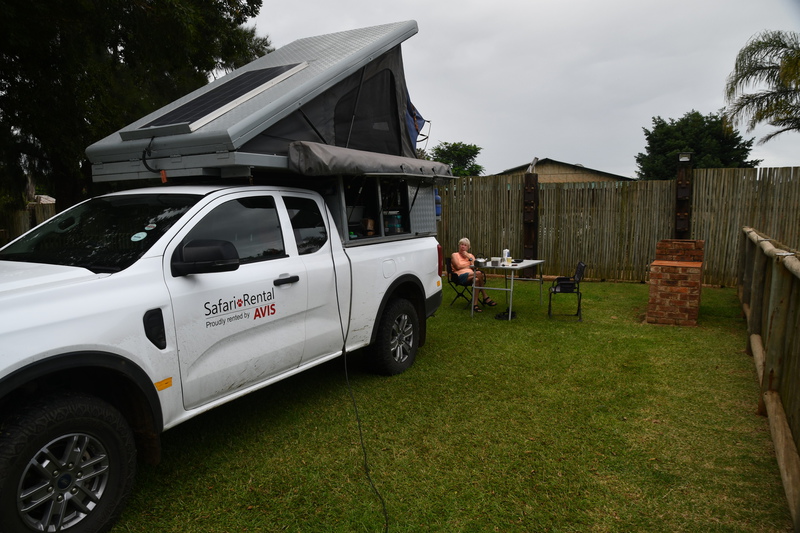 Heute fahren wir, abgesehen von der Fahrzeugübergabe am Sonntag, die letzte Etappe unseres Südafrikaurlaubs. Es ist eine Strecke von ca. 360 km eine kurze Stücke wird es hügelig, danach nur noch eine flache endlose Weite mit Anbauflächen und viel Rinderzucht. Ca. 100 km bevor wir Johannesburg erreichen beginnt der Regen und er hält die ganze Nacht an. Wir mieten uns auf dem Campingplatz in Muldersdrift ein und verbringen den restlichen Nachmittag unter unserem „Sonnensegel“. Nach dem Essen ist es so ungemütlich, dass wir uns ins Innere des Wagens verziehen. Ich sitze auf dem Kühlschrank und Mario auf einem Regel an der Seitenwand (diese wird während der Nacht feucht). Der Schlaf ist eher mäßig, es plattert ohne Unterlass.