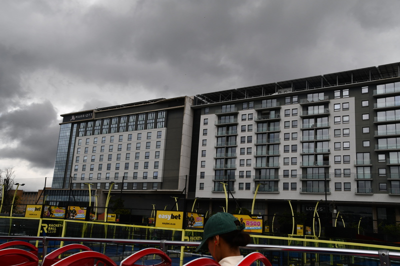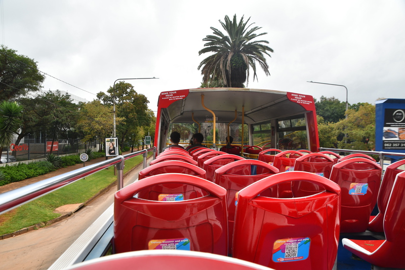 Ich bin schon um 6.30 Uhr draußen und koche Kaffee, während Mario noch für einige Minuten schläft. Der Regen will auch heute nicht aufhören, aber hier am Platz bleiben ist keine Alternative. So bestellt Mario über die Uber App ein Taxi, welches uns in die Stadt in die Nähe des Startplatzes des Hop-on-Hop-of Busses bringt. Mario möchte online die Tickets buchen, was für heute nicht möglich ist und wir denken schon, dass die Busse heute nicht fahren. Wir gehen auf Entdeckungstour und tatsächlich steht da ein Bus, hier kaufen wir die Tickets und lassen uns 2 Stunden an allen möglichen Sehenswürdigkeiten vorbei, durch die Stadt fahren. Johannesburg ist die größte Stadt Südafrika und liegt auf 1800m, und begann im 19 Jahrhundert als Goldgräbersiedlung. Anschließend machen wir noch einen Bummel durch eine große Einkaufsmeile. Das Taxi zurück ist schnell bestellt und so sind wir immer noch bei strömendem Regen gegen 16 Uhr wieder zurück.