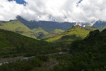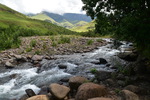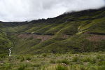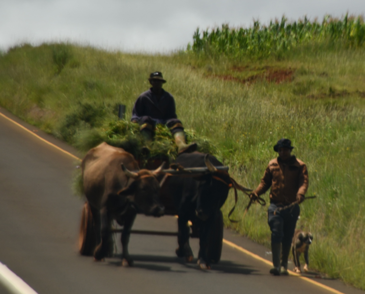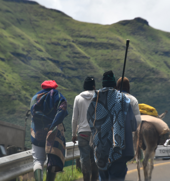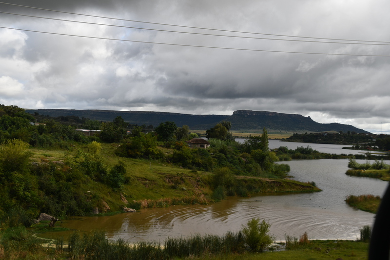 Nach einem sehr guten Frühstück im Hotel setzen wir unseren Weg fort. Wir fahren zum Katse-Staudamm. Es ist bewölkt, regnet aber nicht. Es wird eine interessante und abwechslungsreiche Fahrt. Wir werden 3 mal von der Polizei, die Kontrollen macht, angehalten. Nach jeweils einem freundlichen „How are you“ werden wir nach dem Woher und Wohin gefragt und mit einem „Have a nice day“ weiter gewunken. Durch eine weite Hochebene, vorbei an landwirtschaftlich genutzten Flächen und durch kleine Dörfer nähern wir uns langsam und stetig ansteigend dem „Mafika Lisiu Pass“ auf 3.090 m. An den Berghängen tauchen kleine Wasserfälle auf. Immer wieder fahren wir an Menschen vorbei, die zu Fuß, auf Pferden oder mit Eseln und Ochsenkarren unterwegs sind. (Ein weiteres Transportmittel sind Minibusse)Viele Kinder in Schuluniform kreuzen meist winkend unseren Weg. Lange Zeit fahren wir oberhalb des Flusses entlang der den Katse-Stausee speist. ca. 40 km bevor wir den Katse-Staudamm erreichen kommen wir zu einer einer Schranke und wir denken schon, dass unser Weg hier zu Ende ist, aber nein es ist ein polizeilicher Kontrollpunkt. Die Schranke wird gehoben und wir können weiter. Der Staudamm hält 2 Milliarden qm Wasser . Da es hier tatsächlich nur eine Straße gibt, müssen wir auf dem gleichen Weg, den wir gekommen sind zurück. Als wir wieder an der Kontrollschranke ankommen wird gerade ein Minibus kontrolliert. Der Polizist spricht als erstes mit dem Fahrer, danach öffnet er die Tür des Busses und bringt einen Stoffbeutel, in dem sich ein lebendes Tier befindet, zu tage – es wird konfisziert. Danach muss der Bus auf die Seite fahren und alle müssen aussteigen. Wir werden freundlich durchgewunken. Bei Caledenspoort verlassen wir Lesotho wieder und reisen in Südafrika wieder ein. Das Prozedere der Ausreise wird wesentlich schneller durchgeführt, als gestern die Einreise. Wir suchen unser über das Internet einen Campingplatz bei Fouriesburg aus. Unser Platz, den wir über einen Schotterweg erreichen ist der Uithoek Naturpark“. Wir stehen wieder einmal vor einem verschlossenen Tor. Kontaktnummern sind angebracht – wir erreichen jedoch keine der Nummern (zu schlechtes Netz). Als wir schon wieder wenden wollen, öffnet sich plötzlich das Tor – sollen wir durch? Mario bemerkt hinter uns ein Auto und steigt aus. Es ist die Besitzerin der Anlage und sie bescheinigt uns, dass wir auf den Platz fahren können, den wir nach einem weiteren Kilometer erreichen – herrlich.