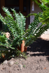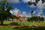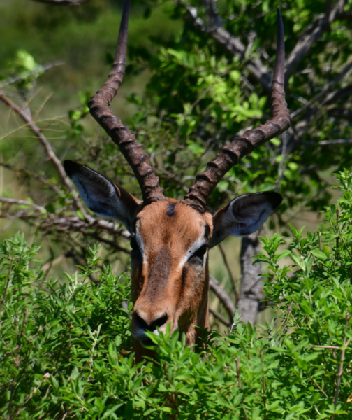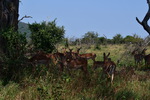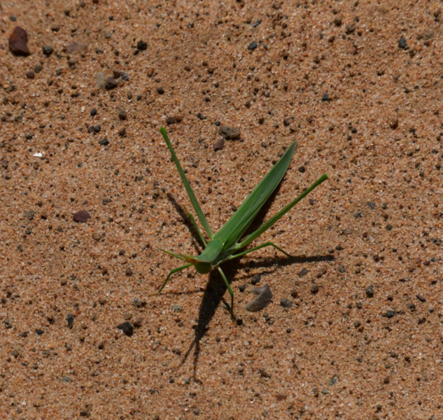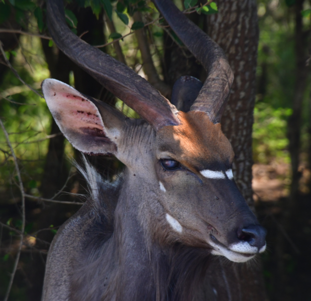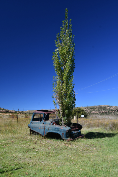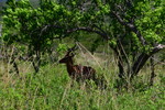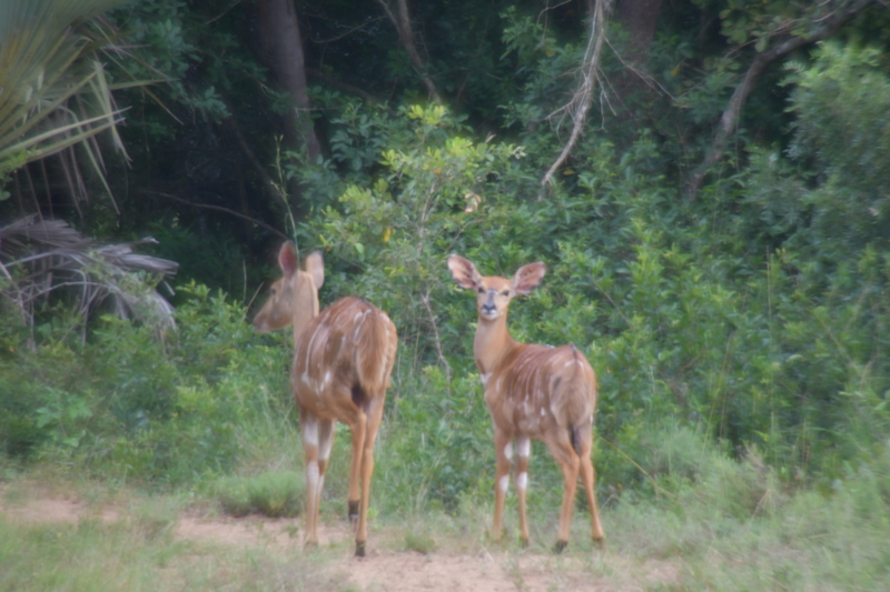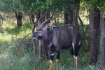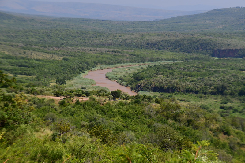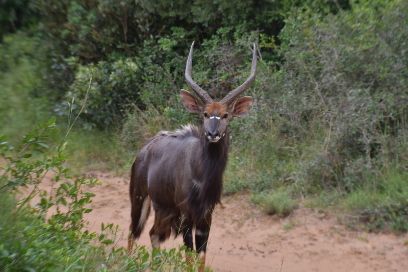 Nun verlassen wir die Berge endgültig. Wir machen uns auf, um heute 500 km zurückzulegen. Es ist bewölkt und so ist es nicht schade, den ganzen Tag heute im Auto zu verbringen. Der größte Teil der Fahrt gestaltet sich eher langweilig, wir fahren durch eine Ebene, die außer Landwirtschaft und gelegentlich Rindern und Ziegen auf der Fahrbahn keine Abwechslung bietet, ausgenommen der vielen, zum Teil sehr vielen Schlaglöcher. Sollte bei uns eine Straße so viele und so tiefe Schlaglöcher aufweisen, würde eine Vollsperrung vollzogen, aber wir sind ja in Südafrika. Und so geht es mal mehr, mal weniger schnell voran. Ein Tankstopp ist heute die einzige Fahrtunterbrechung. Mario hat dieses Mal einen Campingplatz ausgesucht, diesen erreichen wir über eine Schotterpiste, welche nicht schlimmer zu befahren ist, als die Straßen zuvor. Auch heute stehen wir vor einem verschlossen Tor mit Kontaktnummern – Mario ruft an, die Verbindung ist so schlecht, dass das Gegenüber ihn nicht versteht und so warten wir einen Moment um einen zweiten Versuch zu unternehmen. Da kommen die Besitzer schon angefahren und lassen uns rein. Der Platz ist umzäunt, innerhalb des Platzes können wir uns ohne bedenken bewegen und so machen wir einen Spaziergang auf dem uns ein männliches Nyala (Antilope) und zwei weibliche Kudus begegnen.