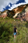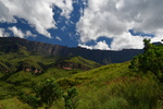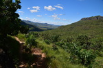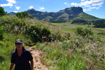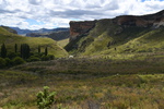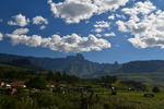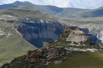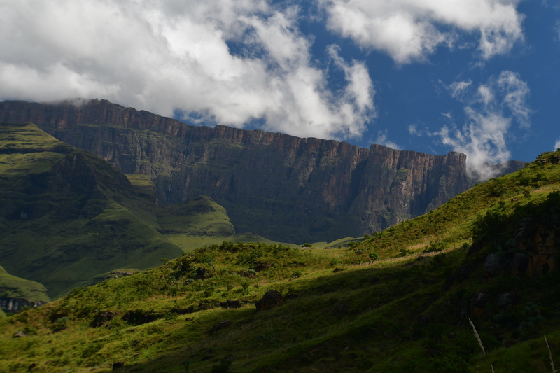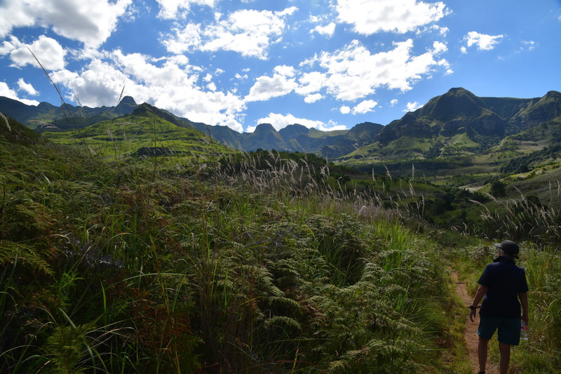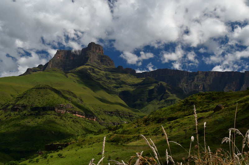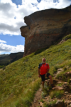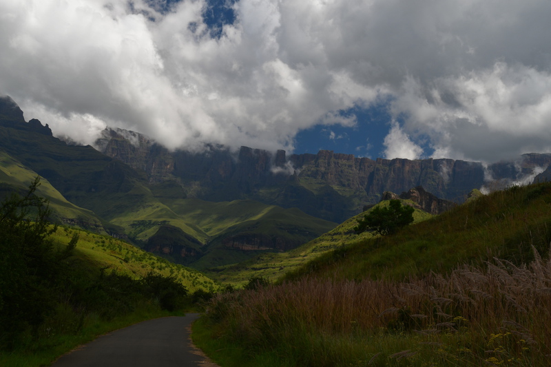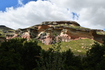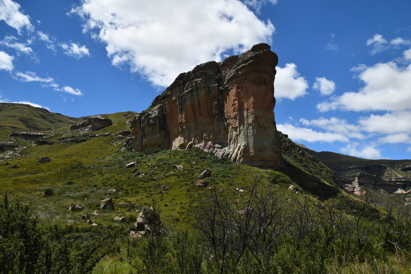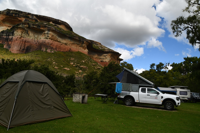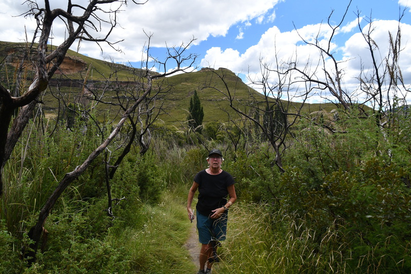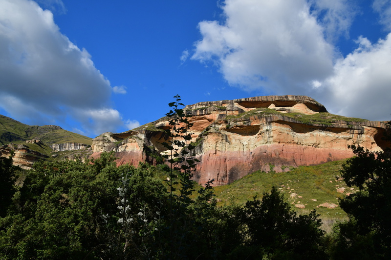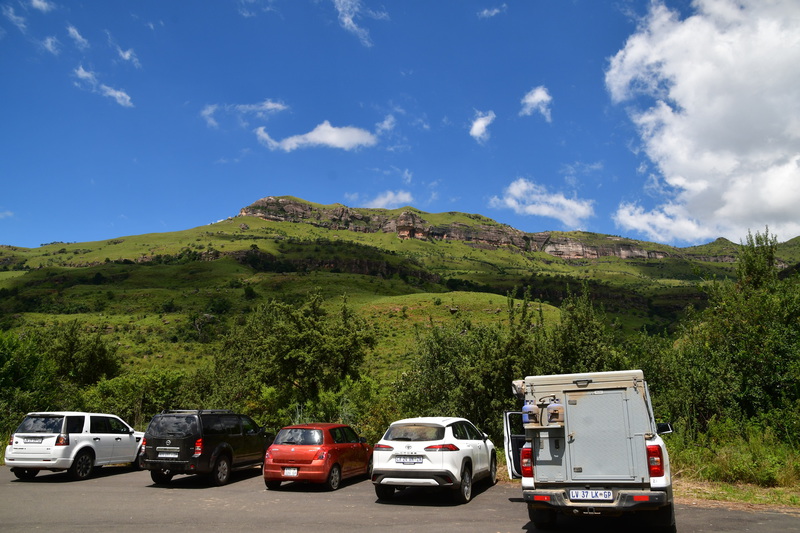 Der erste Blick heute morgen fällt auf den in den verschiedenen Farben schimmernden Fels, an dessen Fuß wir übernachteten. Wir machen noch eine Spazierfahrt durch den Nationalpark und zwar über den „Blesbok Loop“ und den „Oribi Loop“ hierbei sehen wir noch Antilopen und evtl. Gnus (da sind wir nicht sicher, sie waren zu weit entfernt). Nun verlassen wir auf der Hauptdurchgangsstraße den „Golden Gate Nationalpark“ mit vielen tollen Eindrücken in der Tasche. Jetzt geht es nach Harrismith um eine neue Simkarte zu erwerben. Wo wir schon mal da sind machen wir noch einen kleinen Bummel, es gibt nicht viel zu sehen und so fahren wir weiter zum „Royal Natal Nationalpark“. Hier kaufen wir nur ein Tagesticket. Als wir am Visitorcenter ankommen sind wir froh, dass wir das getan haben, denn mit dem Auto kann man lediglich 3 verschiedene Parkplätze anfahren. In diesem Park gibt es fast ausschließlich Wanderwege, wobei die kürzeste Tour mit 3 Stunden angegeben ist. Wir parken am „Gorge Car Park“, ziehen unsere Wanderschuhe an und machen uns auf den Weg. Wir laufen auf einem schmalen Pfad, dessen Rand dicht mit Gräsern bewachsen ist, über ein schmales Rinnsal und viele Steine führt. Wir kommen zu einer Brücke, die aus schmalen zusammengebundenen Baumstämmen besteht und ohne Geländer ist, das Überqueren ist kein Problem. Nach ca. 1 Stunde haben wir einen tollen Blick auf eine weit entfernte senkrecht abfallende Felsformation und wir vermuten, dass es das „Amphitheatre“ ist. Nun gehen wir den gleichen Weg zurück. Weiter geht es mit dem Auto, wir verlassen den Park und erreichen nach wenigen Kilometern, teils über Schotter (wegen Straßenbau) ein Hinweisschild auf „Campingplatz und Resort Drakensville“, den steuern wir an. Die Reception ist bereits geschlossen, aber wir durften einfahren. Marios Führerschein wurde geprüft und unser Kennzeichen notiert, ein Platz wurde uns zugewiesen. Die Anlage hat sogar einen kleinen Pool und so nehmen wir, nachdem unser Auto steht, erst einmal ein Bad. Ein sehr schöner, empfehlenswerter Platz!