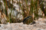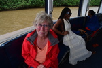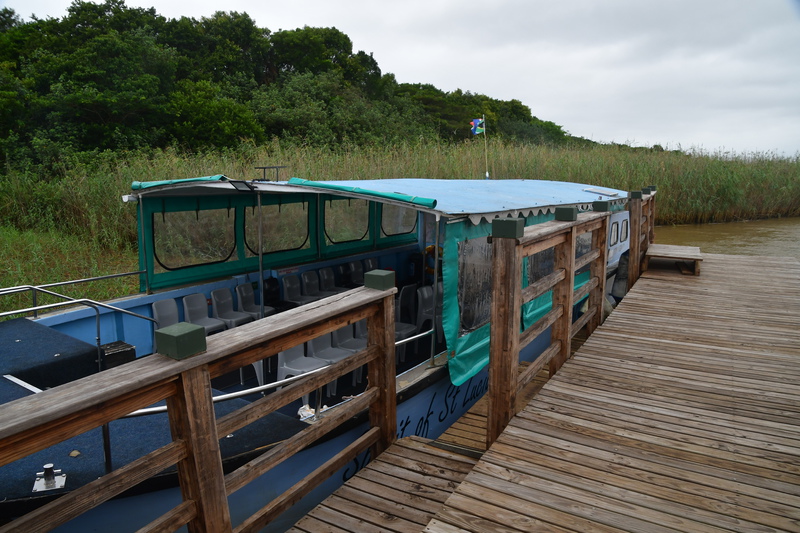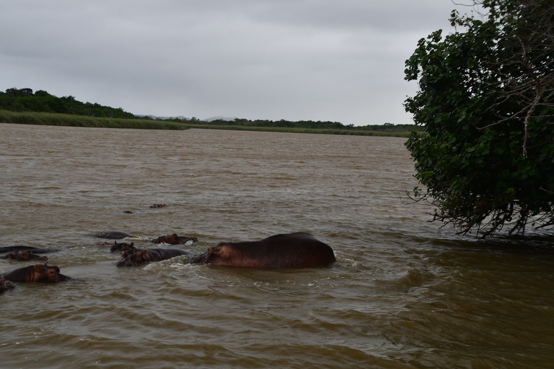 Mario steht früh auf und kocht Kaffee, da kommt ein Affe angerannt und macht sich am Mülleimer zu schaffen, er vertreibt ihn. Ich finde auf dem Weg zum Toilettengebäude einen Deckel für die Mülltonne und nehme diesen mit. Nun ist der Eimer abgedeckt, aber wir haben die Rechnung ohne den Affen gemacht, da der Mülleimer schräg steht, springt er vom Baum her dagegen, sodass er umfällt. Als wir rufen flüchtet er. Wir stellen den Mülleimer auf ein ebenes Flecken, machen den Deckel wieder drauf und beschweren diesen. Als der Affe wieder kommt, versucht er von 3 Seiten den Deckel zu entfernen – wir waren schlauer, er bekommt es nicht hin und so zieht er von dannen. Das war ein herrliches Schauspiel während unserem Frühstück. Nun packen wir wieder ein um nach St. Lucia zu fahren. Im Touristbüro buchen wir eine Bootsfahrt um Hippos und Krokodile zu sehen. Wir haben Glück, die Tour beginnt um 12 Uhr. Hippos können wir viele sehen, doch die Krokodile halten sich versteckt. Ein einziges liegt versteckt im Gras.