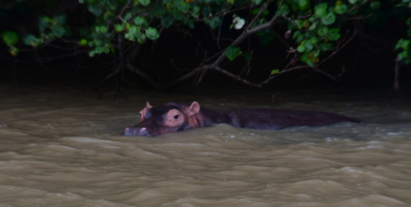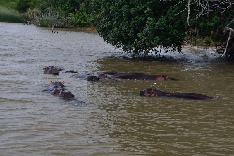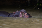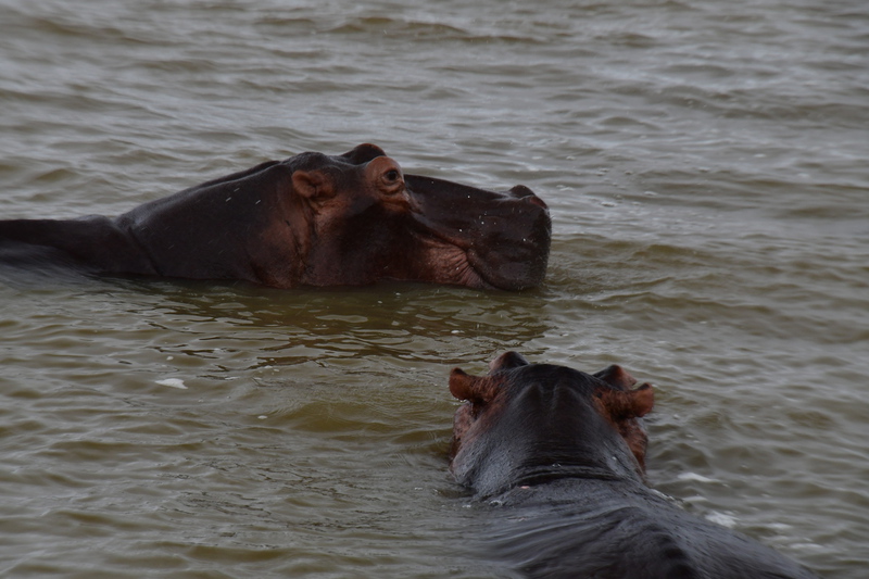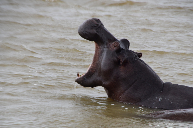Nun wollen wir den Campingplatz anfahren und bekommen an der Rezeption zum Park die Auskunft, dass der Platz geschlossen ist, warum ganz genau verstehen wir nicht, was wir verstehen ist, dass es in diesem Bereich zur Zeit keinen Strom gibt. Wir buchen uns stattdessen im „Elephant Lake Hotel“ ein. Was, angesichts des strömenden Regens eine gute Entscheidung ist. Im Restaurant John Dorys gut gegessen. Am Abend besuchte und dann Hippo. Er lief durchs Dorf und ließ sich von niemanden stören.